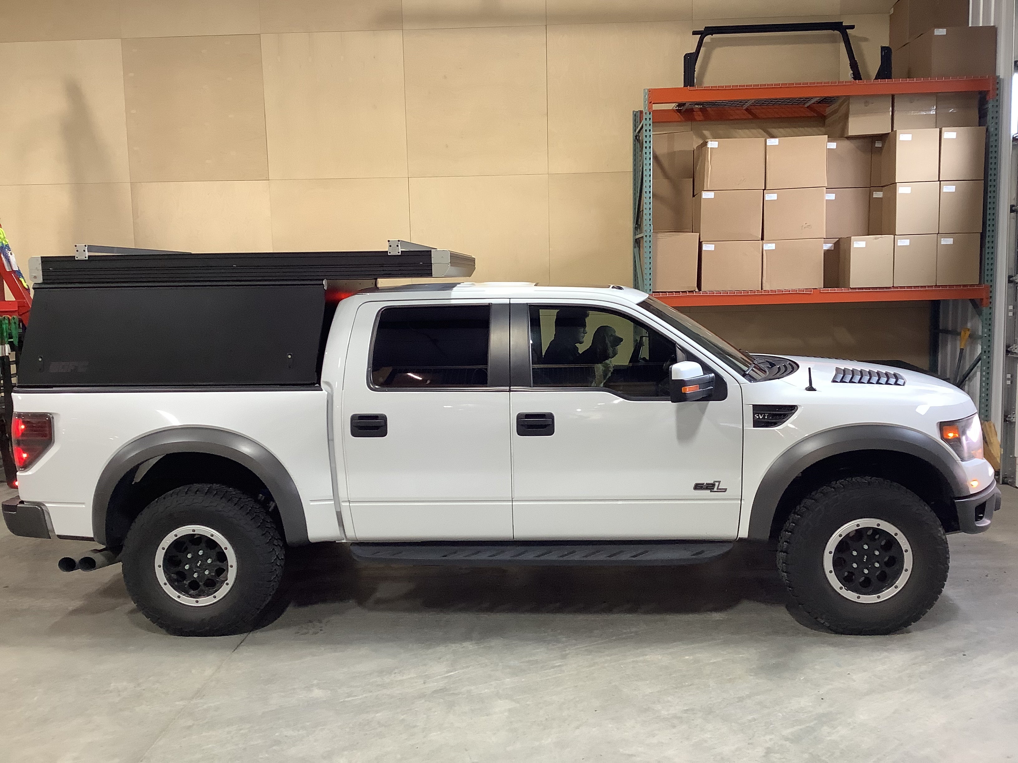 This 2013 Ford F150 Raptor is outfitted with a GFC Platform Camper with Black panels. Check out more build specs below.
