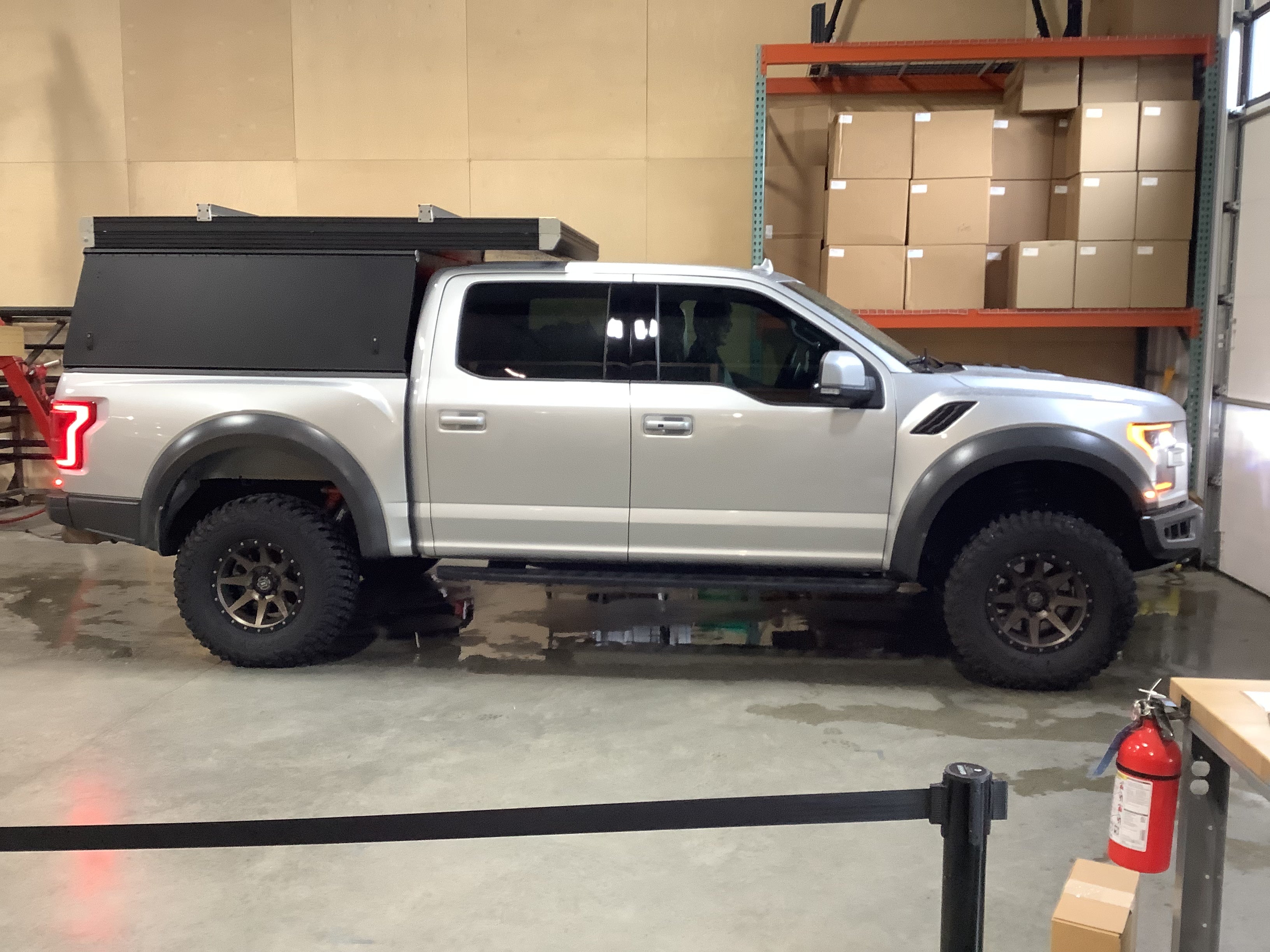 This 2019 Ford F150 Raptor is outfitted with a GFC Platform Camper with Black panels. Check out more build specs below.