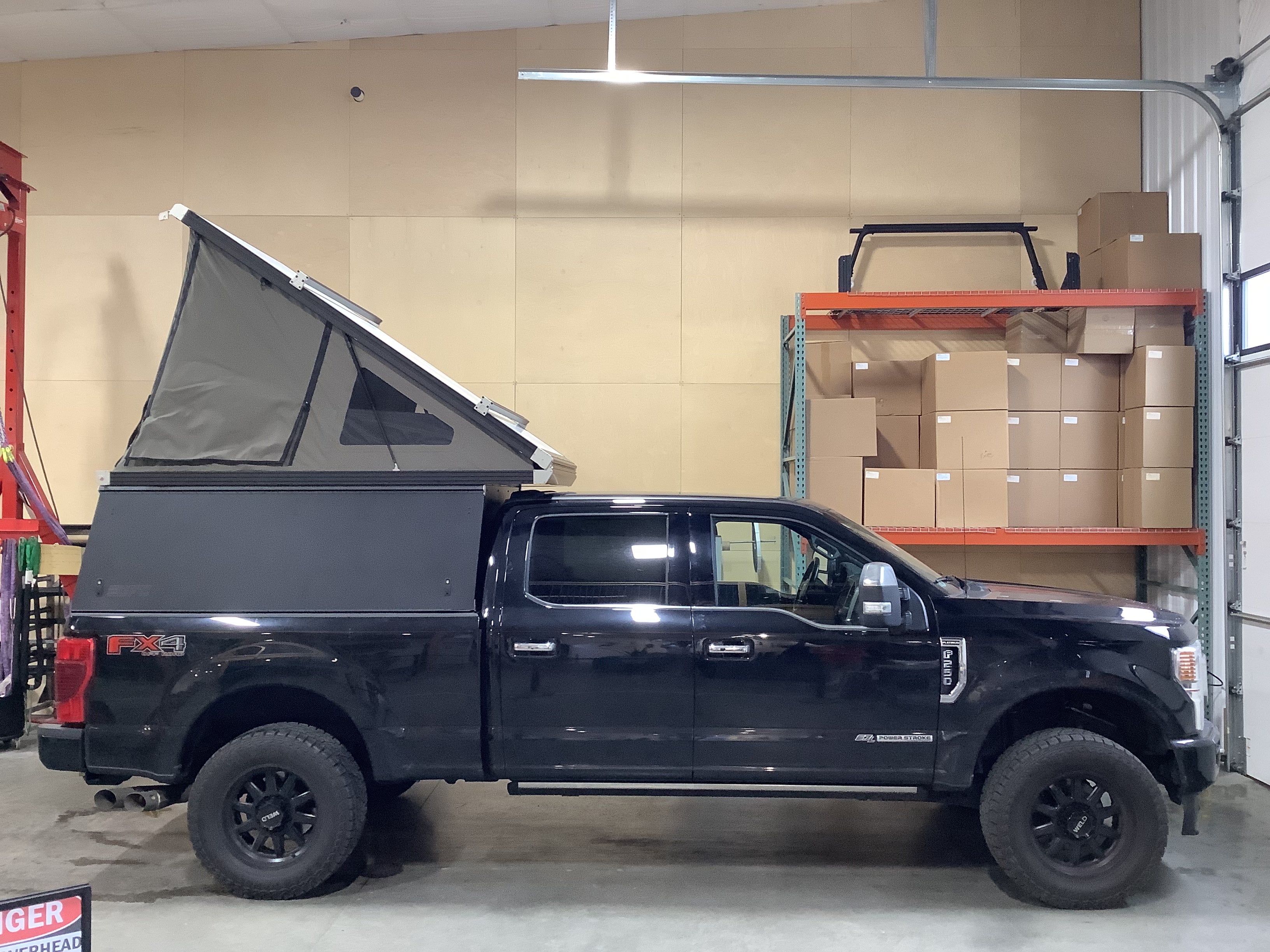 Product: Platform Camper Panel Color: Black GFC Options: Windows, Side Door, Beef Rack Year: 2020 Make: Ford Model: F250 Cab/Bed: Double Cab 6 Foot Truck Color Black Wheels: Stock Suspension: Stock Tire: Open Range A/T 35/12.5/R20 Mods: All I need is a GFC Instagram Handle: Install Date: 2022-07-09 Location: WA