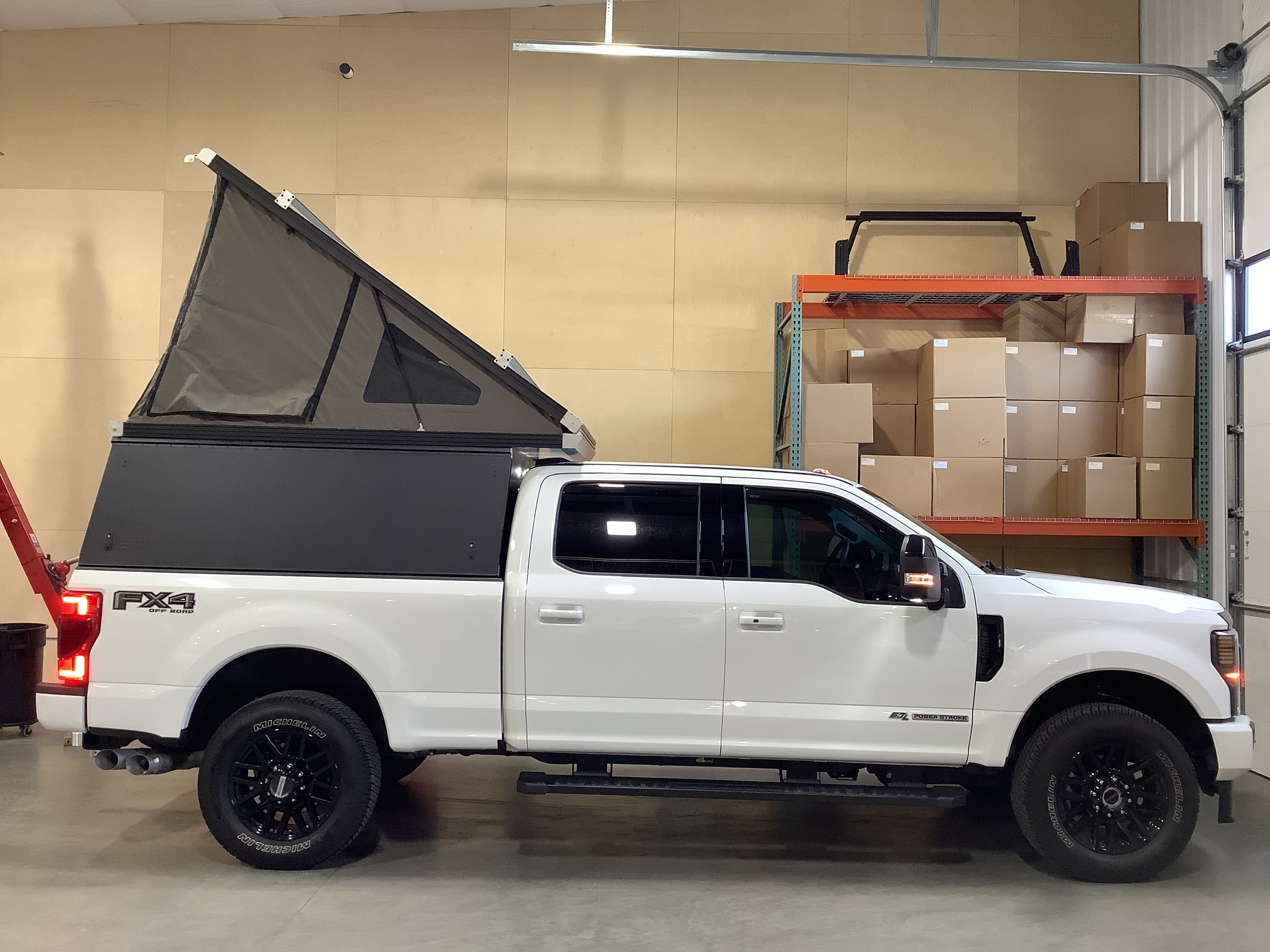 This 2022 Ford F250 is outfitted with a GFC Platform Camper with Black panels. Check out more build specs below.