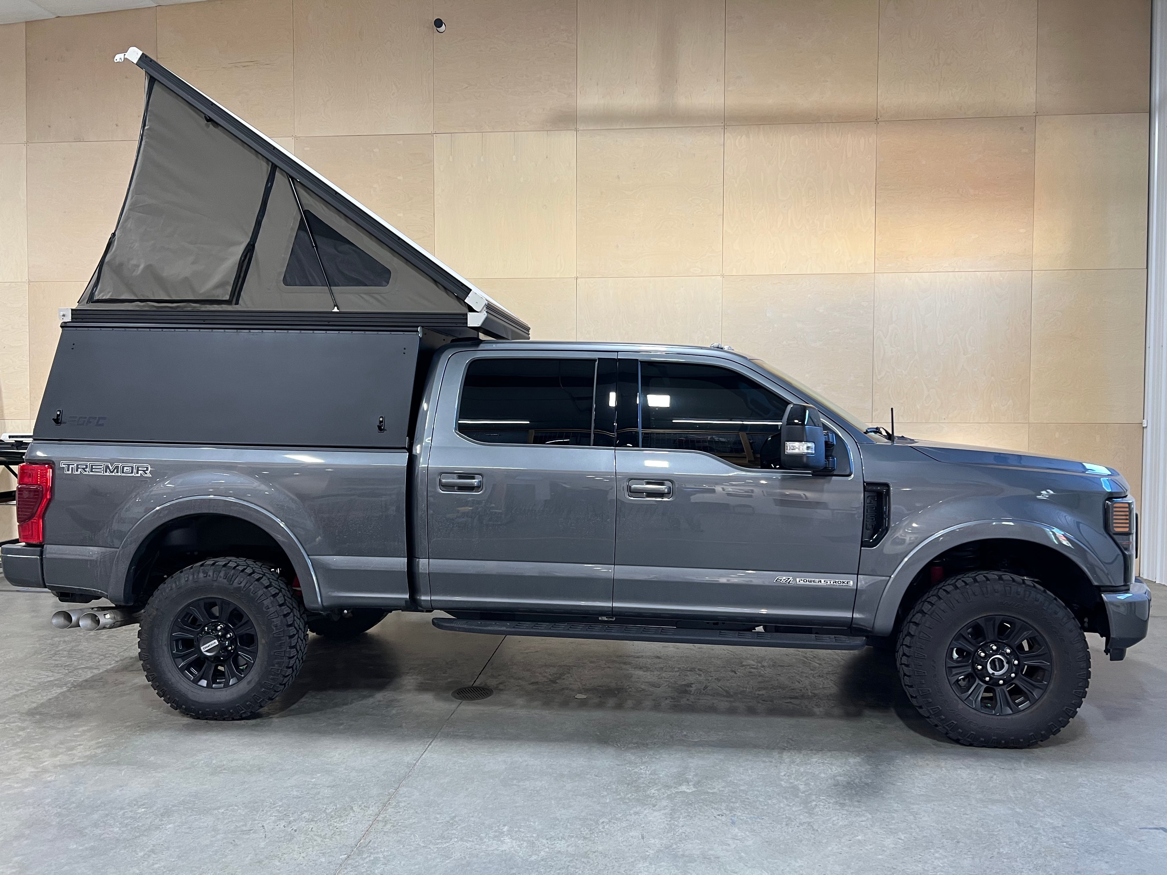 This 2022 Ford F250 is outfitted with a GFC Platform Camper with Black panels. Check out more build specs below.