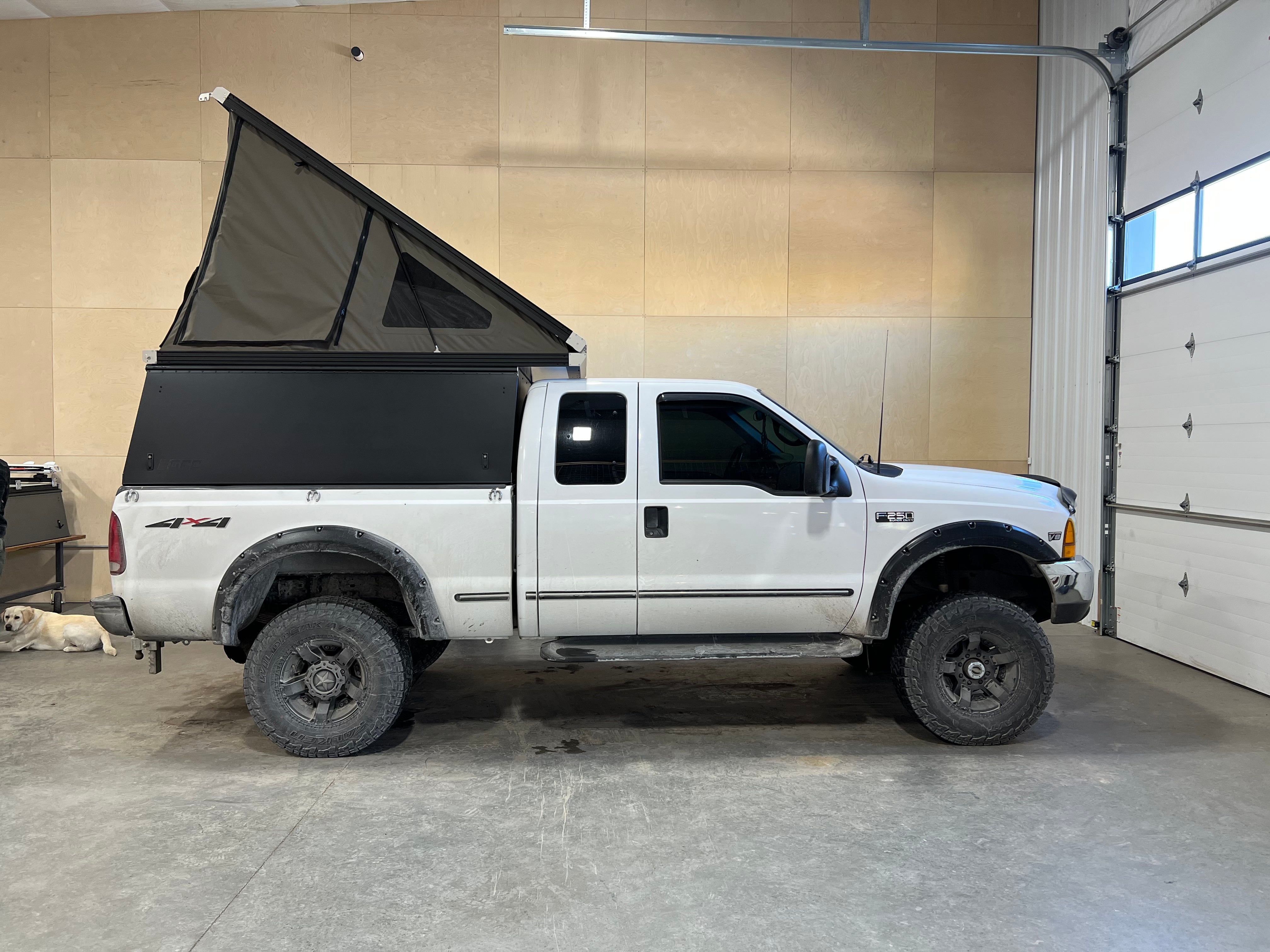 This Ford F250 is outfitted with a GFC Platform Camper with Black panels. Check out more build specs below.