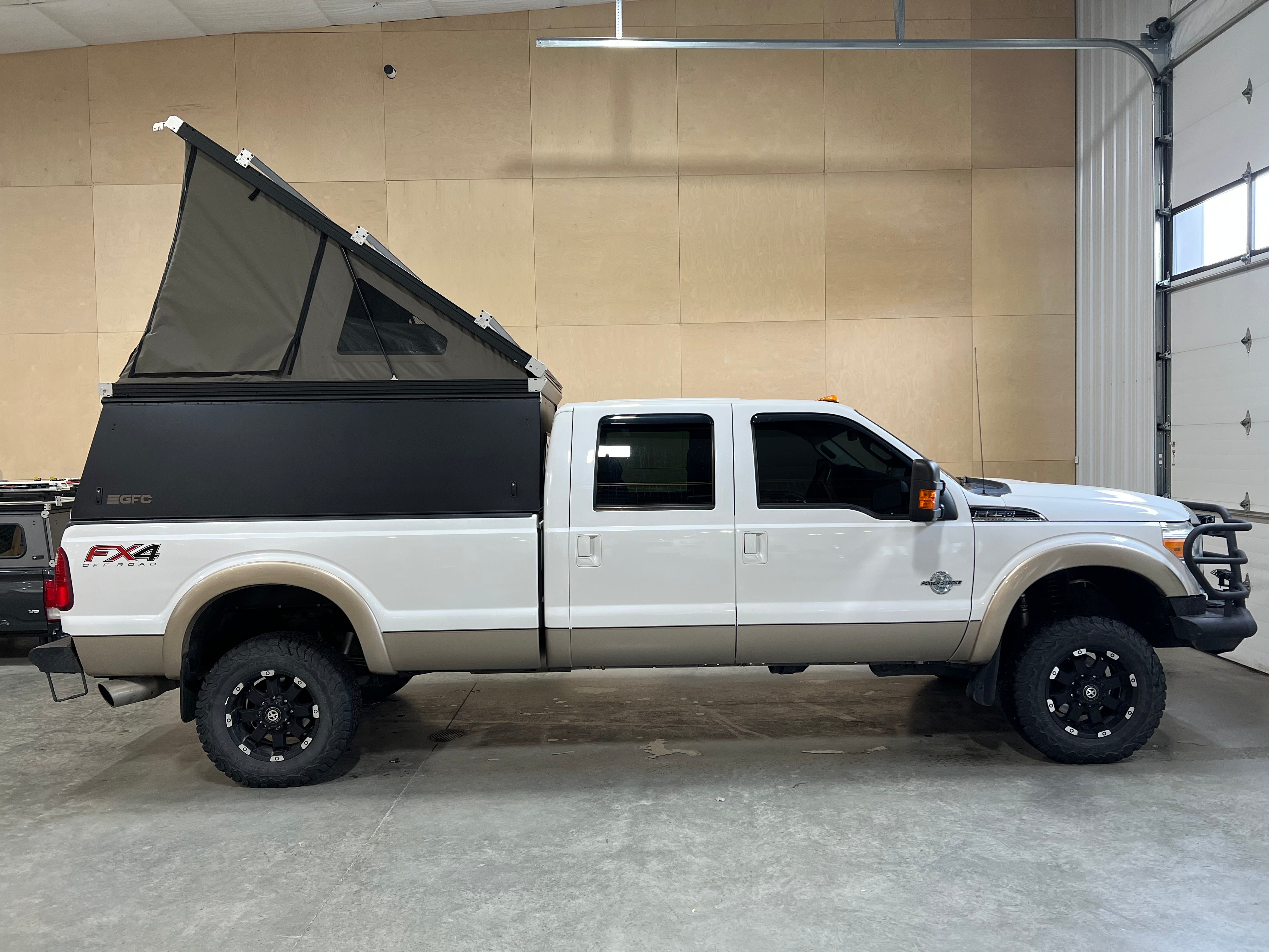 This 2012 Ford F250 is outfitted with a GFC Platform Camper with Black panels. Check out more build specs below.