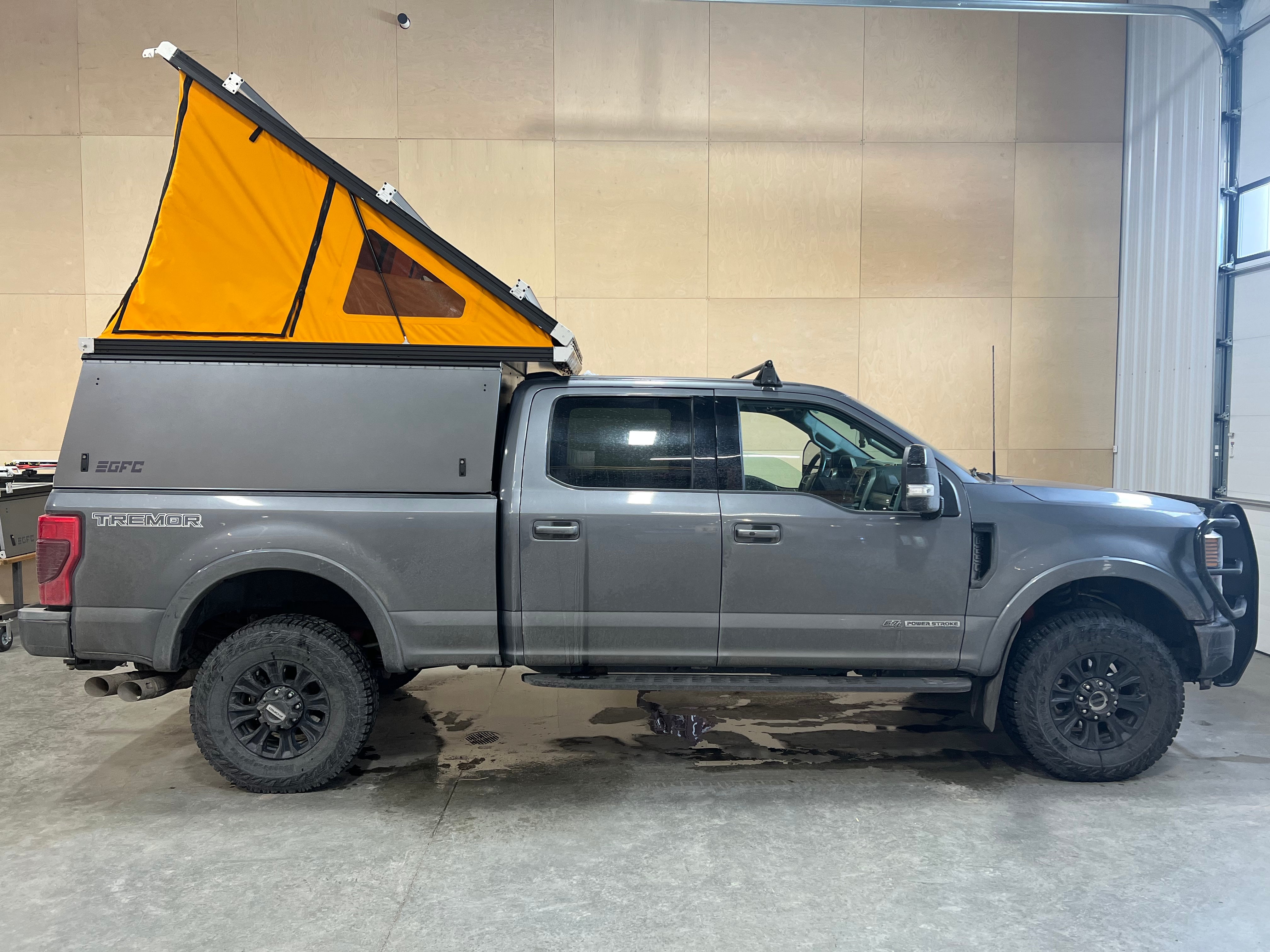 This 2021 Ford F250 is outfitted with a GFC Platform Camper with Magnetic Gray Metallic panels. Check out more build specs below.