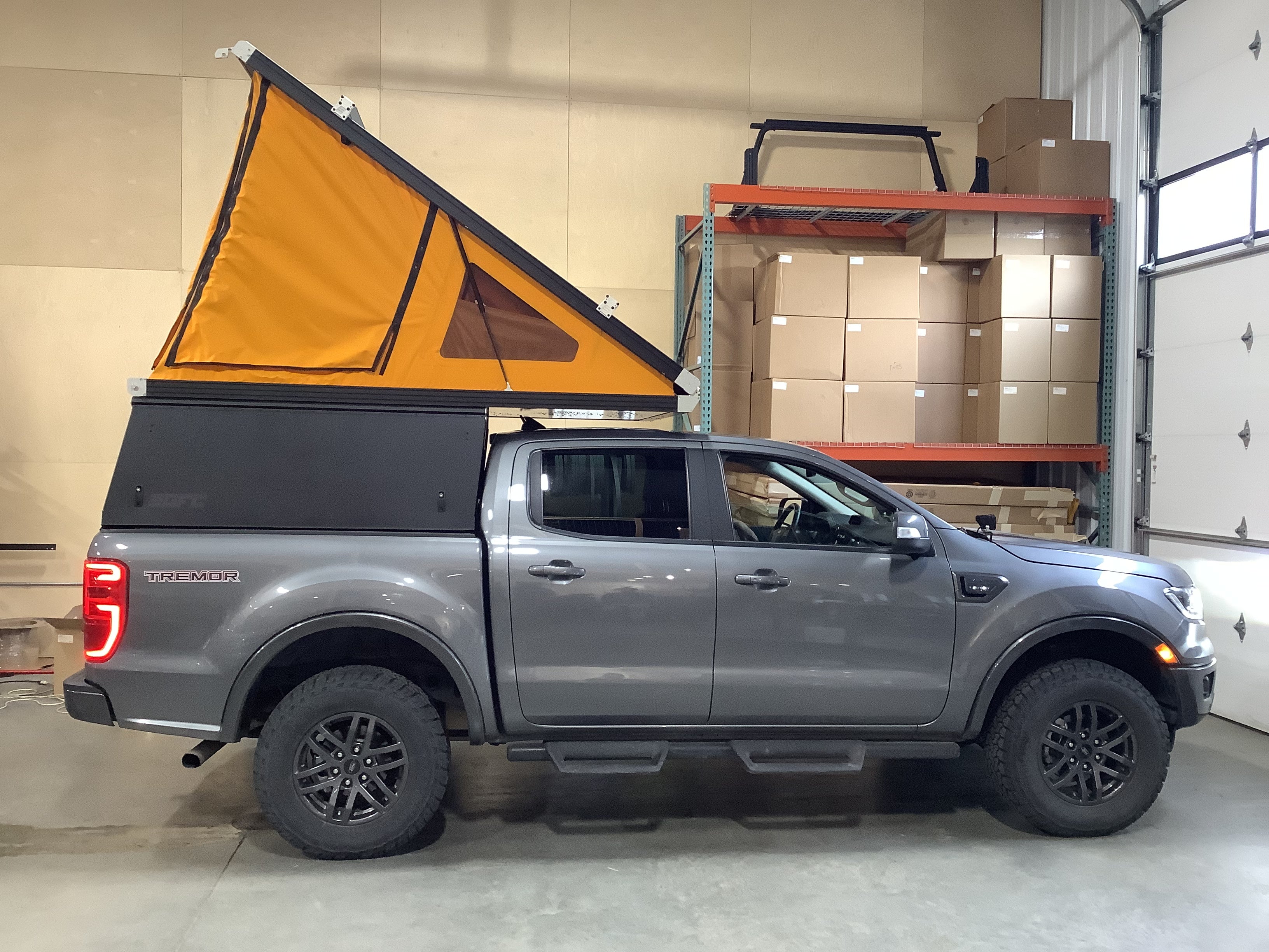 This 2021 Ford Ranger is outfitted with a GFC Platform Camper with Black panels. Check out more build specs below.