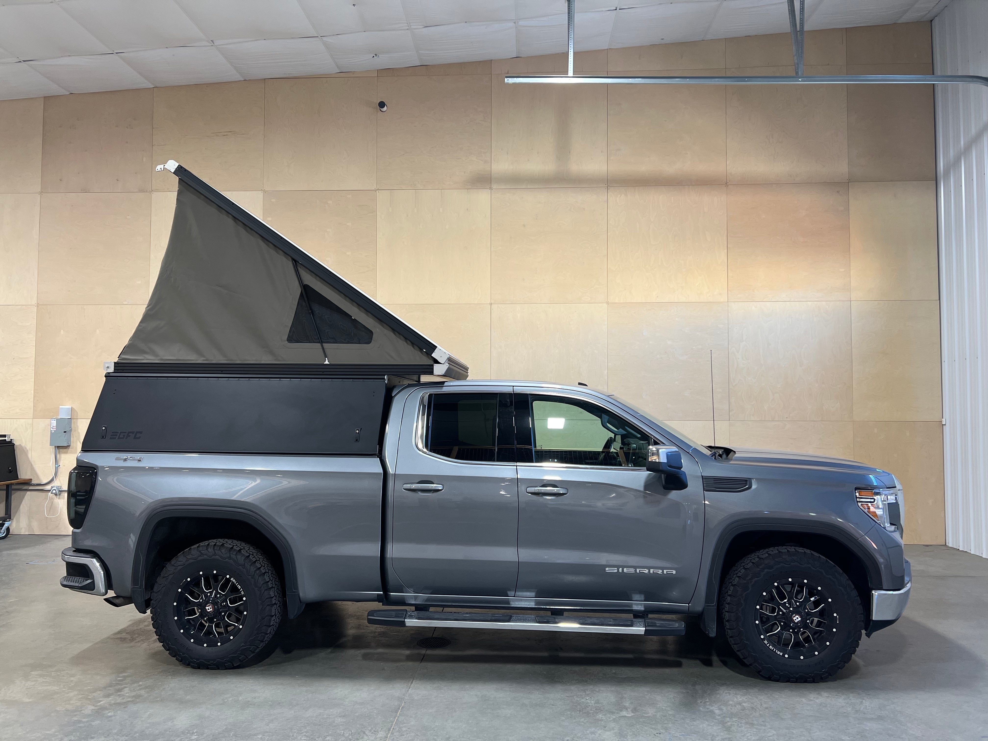This 2020 GMC Sierra is outfitted with a GFC Platform Camper with Black panels. Check out more build specs below.