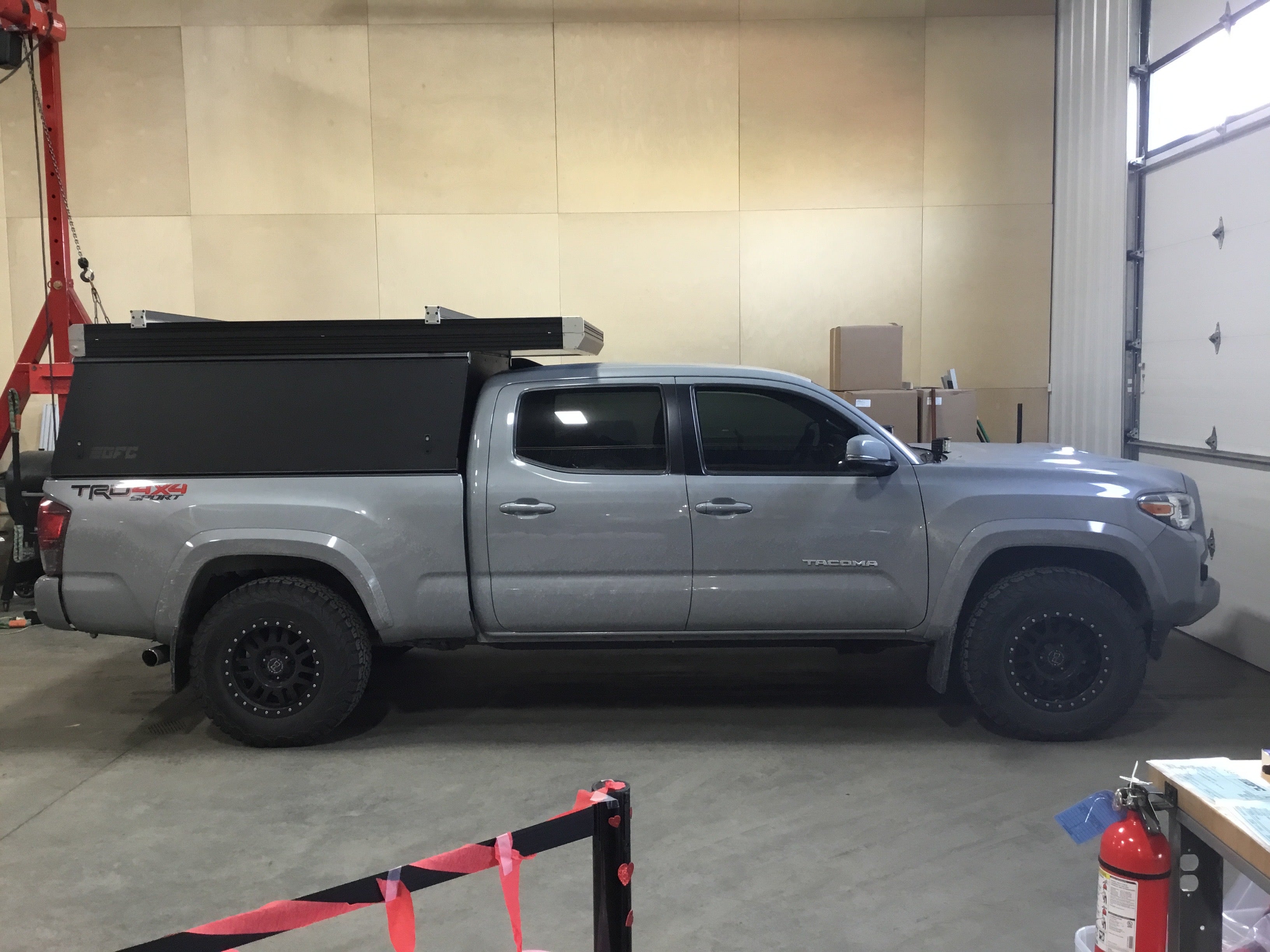Product: Platform Camper Panel Color: Black GFC Options: Beef Rack, Windows, Side Door Year: 2018 Make: Toyota Model: Tacoma Cab/Bed: Double Cab 6 Foot Truck Color Gray Wheels: Black Rhino Suspension: Stock Tire: BFG KO2 265/75/R16 Mods: All I need is a GFC Instagram Handle:None Install Date: 2022-02-06 Location: Arizona