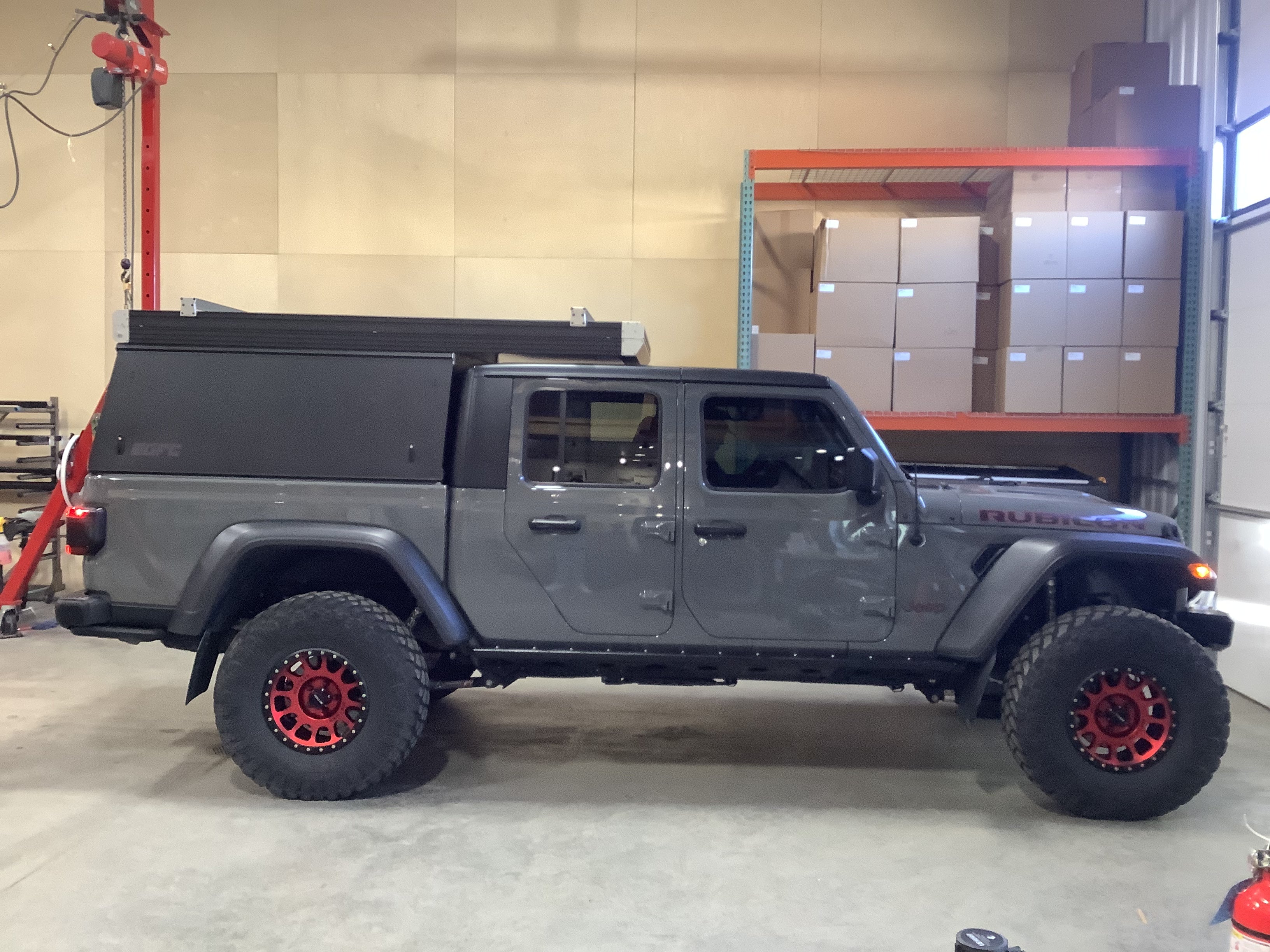 This 2021 Jeep Gladiator is outfitted with a GFC Platform Camper with Black panels. Check out more build specs below.