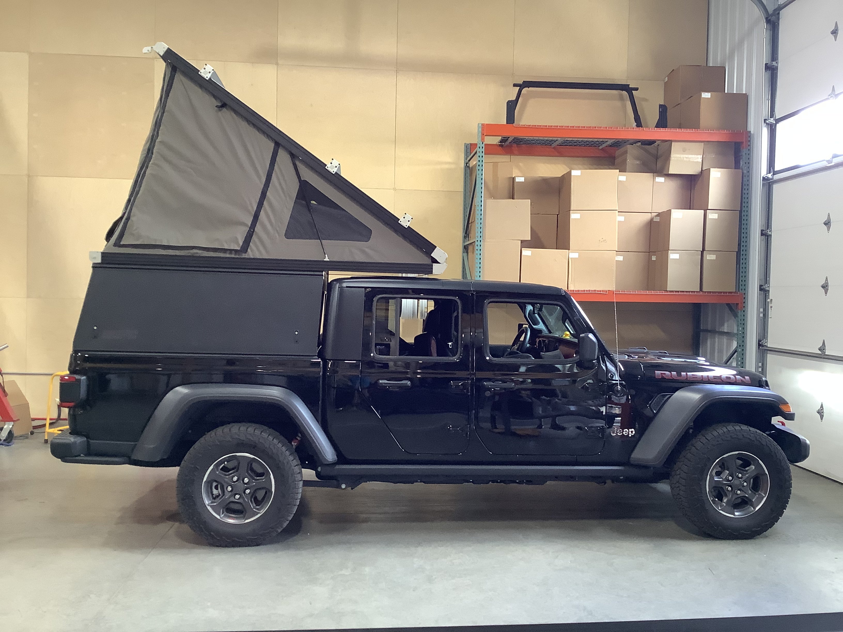 Product: Platform Camper Panel Color: Black GFC Options: Beef Rack, Side Door, Windows Year: 2021 Make: Jeep Model: Gladiator Cab/Bed: Double Cab 5 foot Truck Color Black Wheels: Stock Suspension: Stock Tire: Falken WildPeak 285/70/R17 Mods: All I need is a GFC Instagram Handle:@Trey.Kill Install Date: 2022-07-29 Location: FL