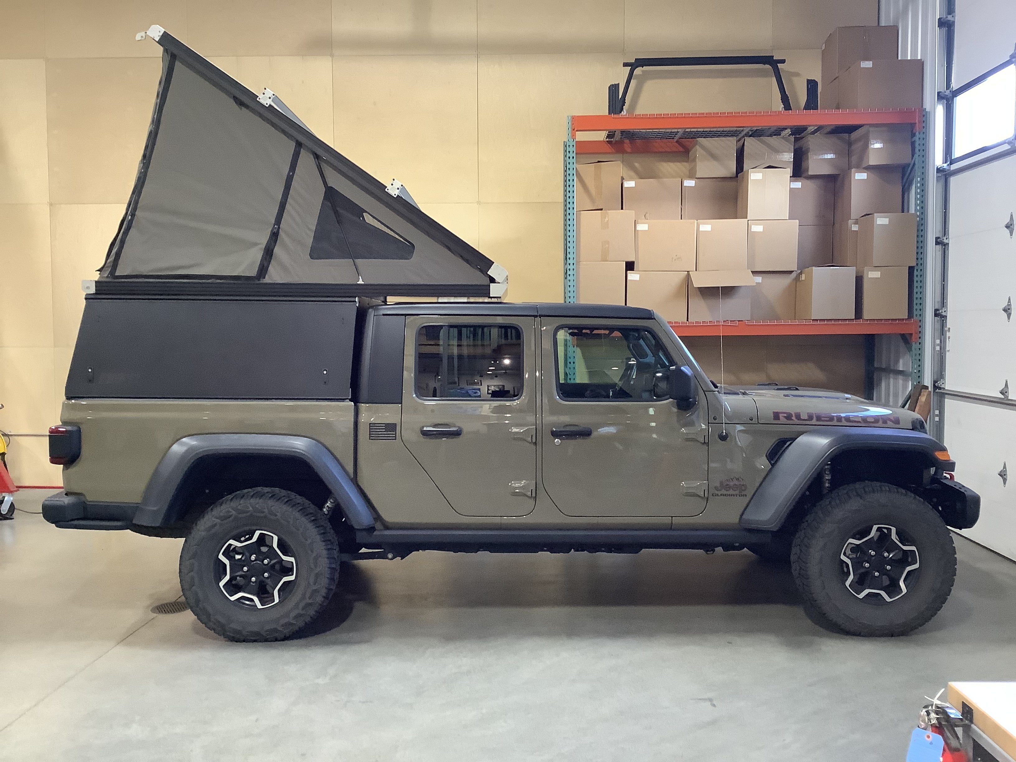 Product: Platform Camper Panel Color: Black GFC Options: Windows, Side Door, Beef Rack Year: 2020 Make: Jeep Model: Gladiator Cab/Bed: Double Cab 5 foot Truck Color Tan Wheels: Stock Suspension: Fox Tire: BFG KO2 35/12.5/R17 Mods: All I need is a GFC Instagram Handle:@phantmchameleon Install Date: 2022-09-09 Location: Colorado