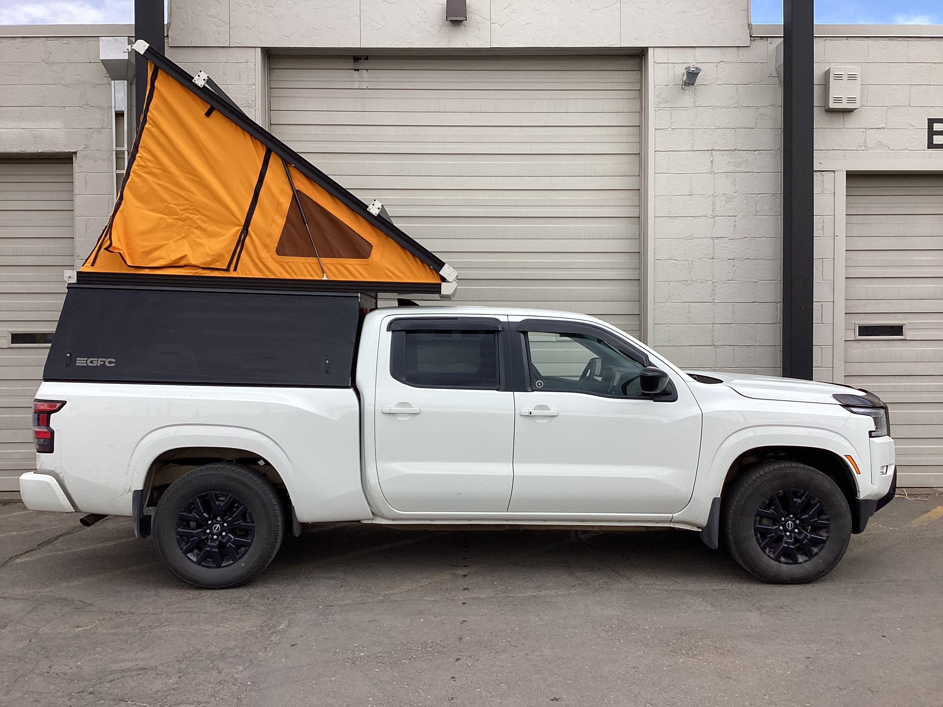 This 2023 Nissan Frontier is outfitted with a GFC Platform Camper with Black panels. Check out more build specs below.