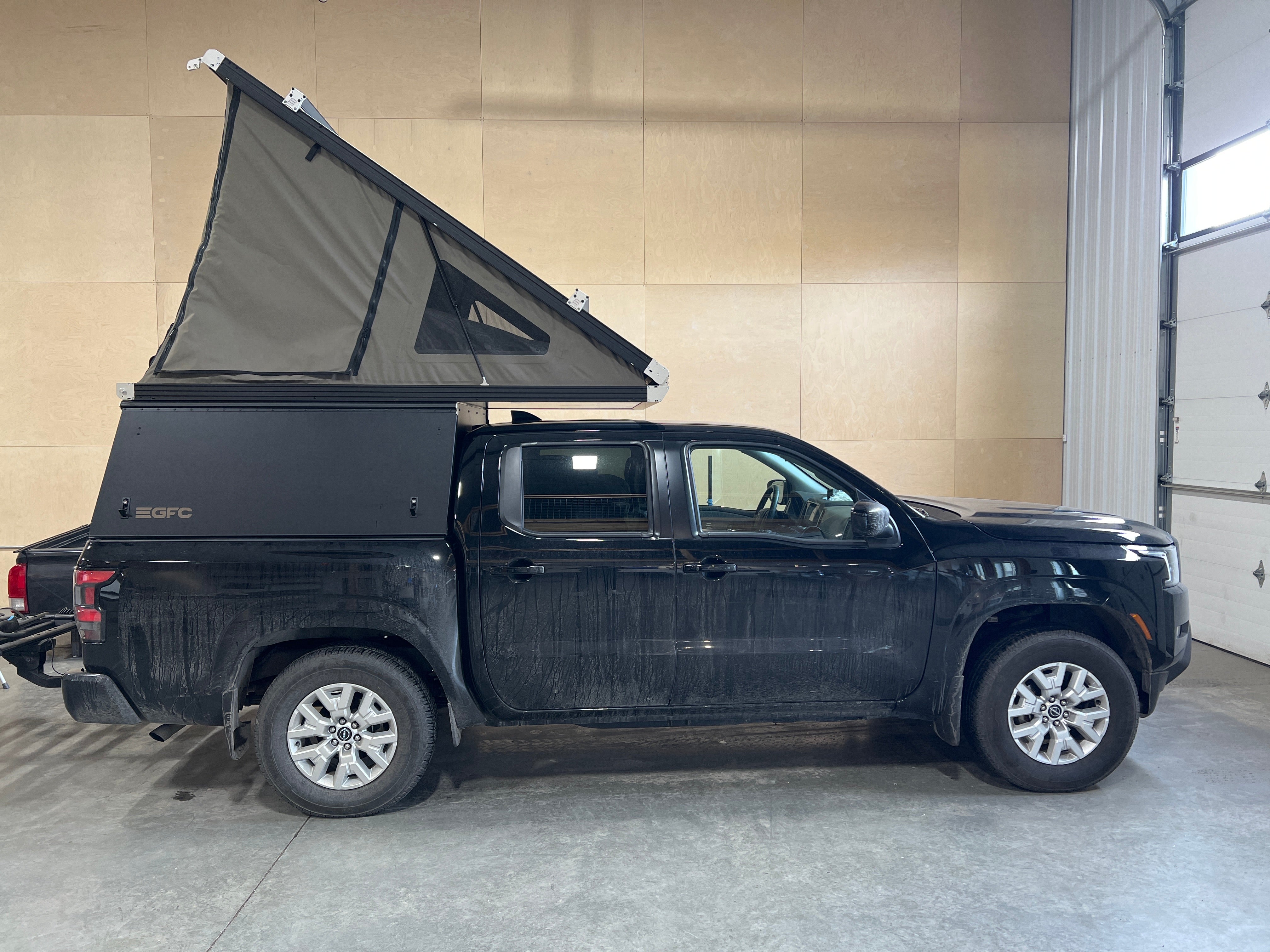This 2022 Nissan Frontier is outfitted with a GFC Platform Camper with Black panels. Check out more build specs below.