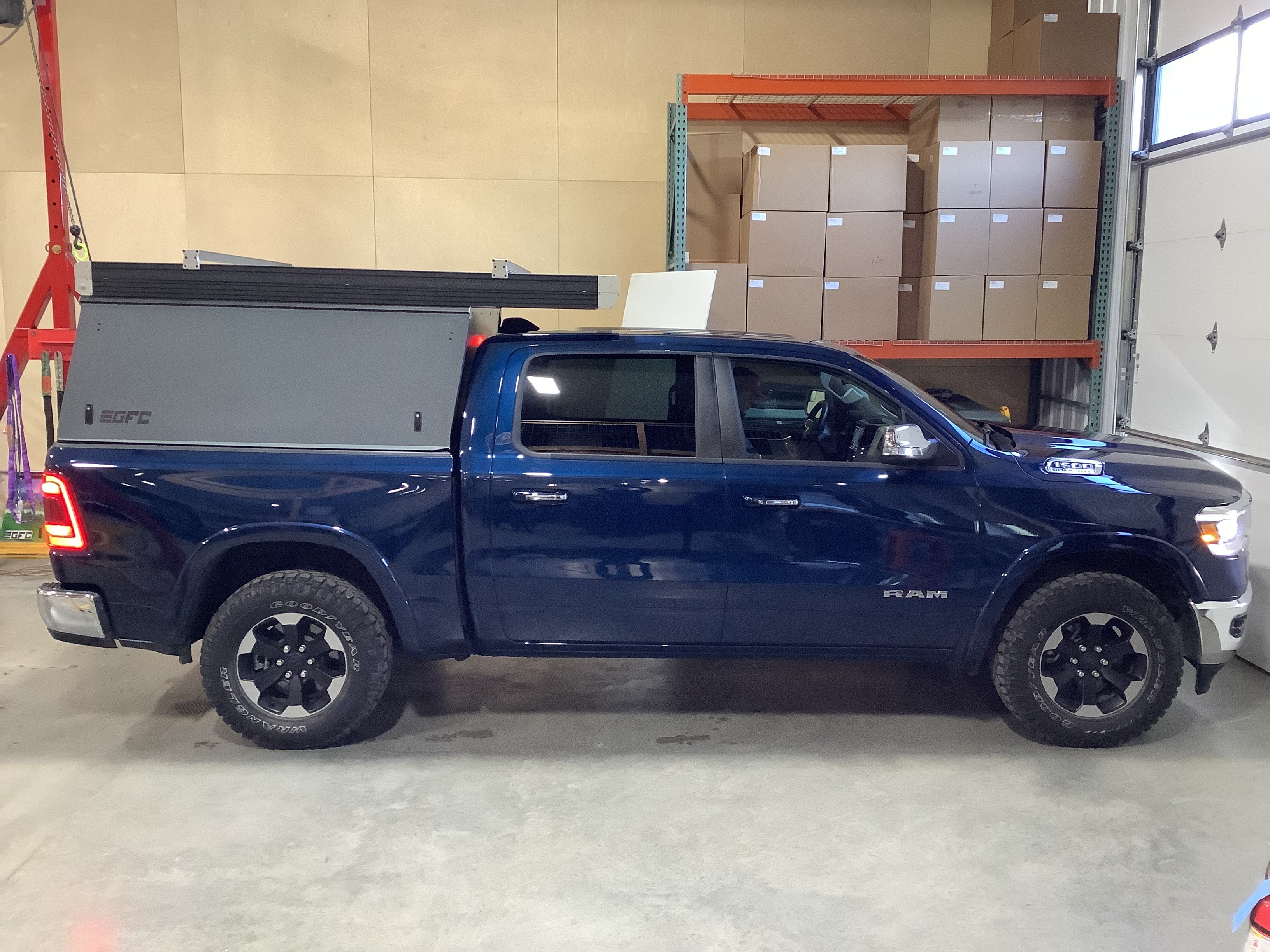 This 2021 Ram 1500 is outfitted with a GFC Platform Camper with Battleship Gray panels. Check out more build specs below.