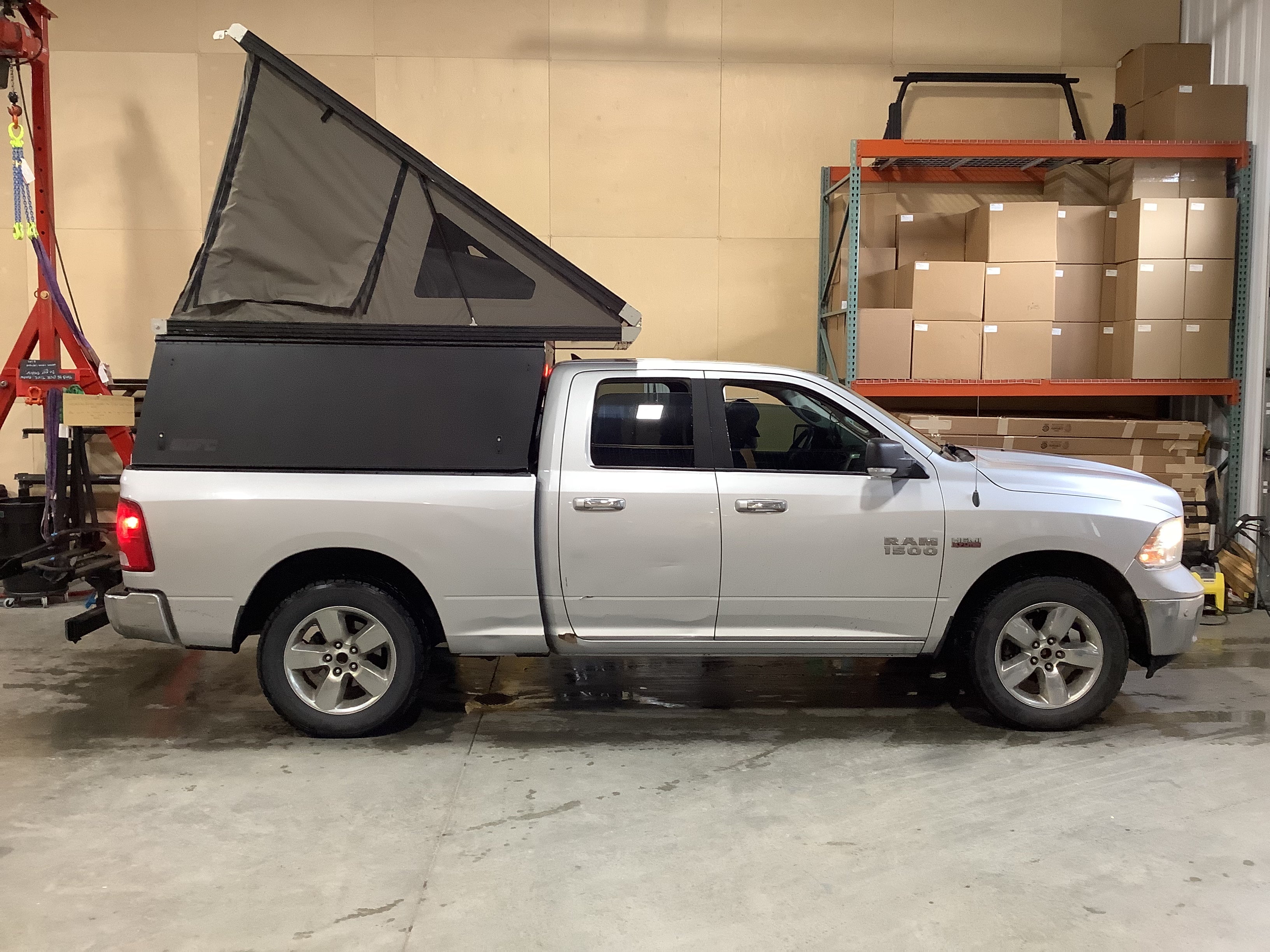 Product: Platform Camper Panel Color: Black GFC Options: Windows, Side Door Year: 2016 Make: Ram Model: 1500 Cab/Bed: Double Cab 6 Foot Truck Color Silver Wheels: Stock Suspension: Stock Tire: Big O Bigfoot 275/60/R20 Mods: All I need is a GFC Instagram Handle: None Install Date: 2022-06-05 Location: Colorado