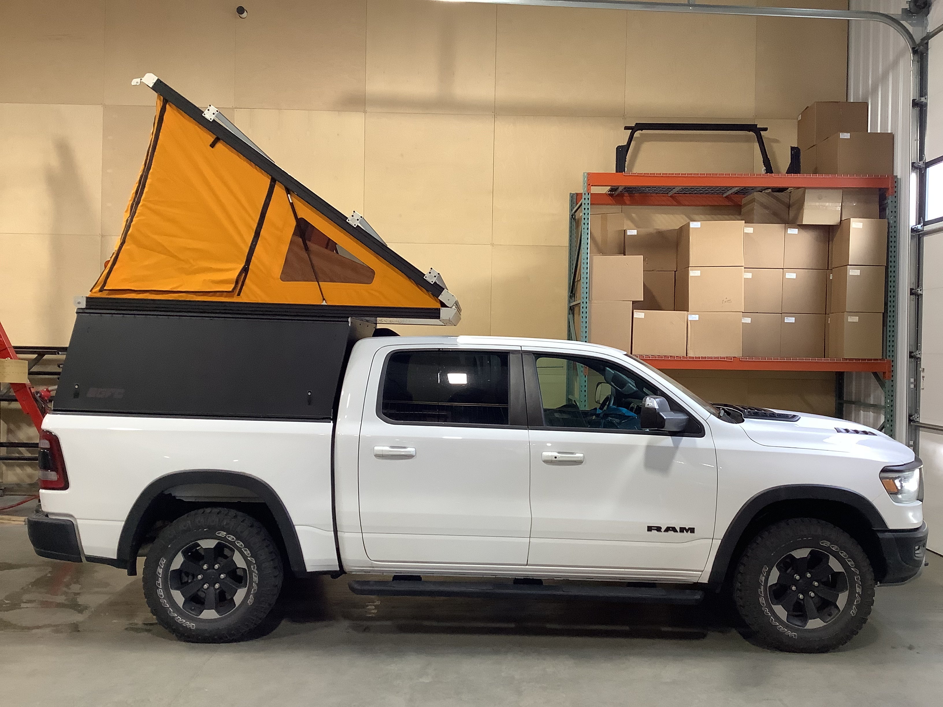 Product: Platform Camper Panel Color: Black GFC Options: Windows, Beef Rack, Side Door Year: 2019 Make: Ram Model: 1500 Cab/Bed: Double Cab 5 foot Truck Color White Wheels: Stock Suspension: Stock Tire: Goodyear Wrangler 275/70/R18 Mods: All I need is a GFC Instagram Handle: Install Date: 2022-07-15 Location: UT