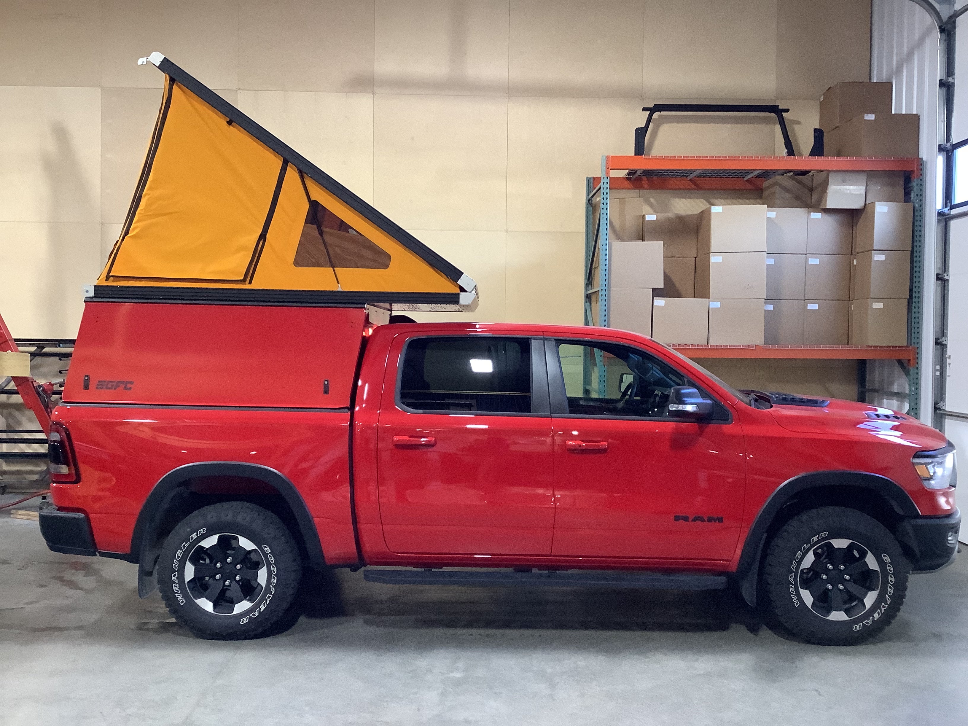 Product: Platform Camper Panel Color: Race Red GFC Options: Windows, Side Door Year: 2022 Make: Ram Model: 1500 Cab/Bed: Double Cab 5 foot Truck Color Red Wheels: Stock Suspension: Stock Tire: Goodyear Wrangler Duratrac 275/70/18 Mods: All I need is a GFC Instagram Handle: Install Date: 2022-07-14 Location: MT