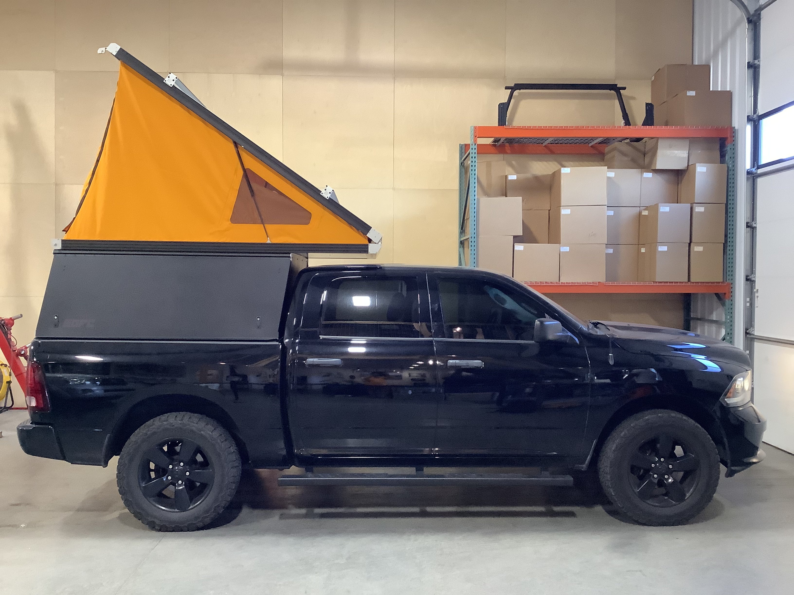 This 2014 Ram 1500 is outfitted with a GFC Platform Camper with Black panels. Check out more build specs below.
