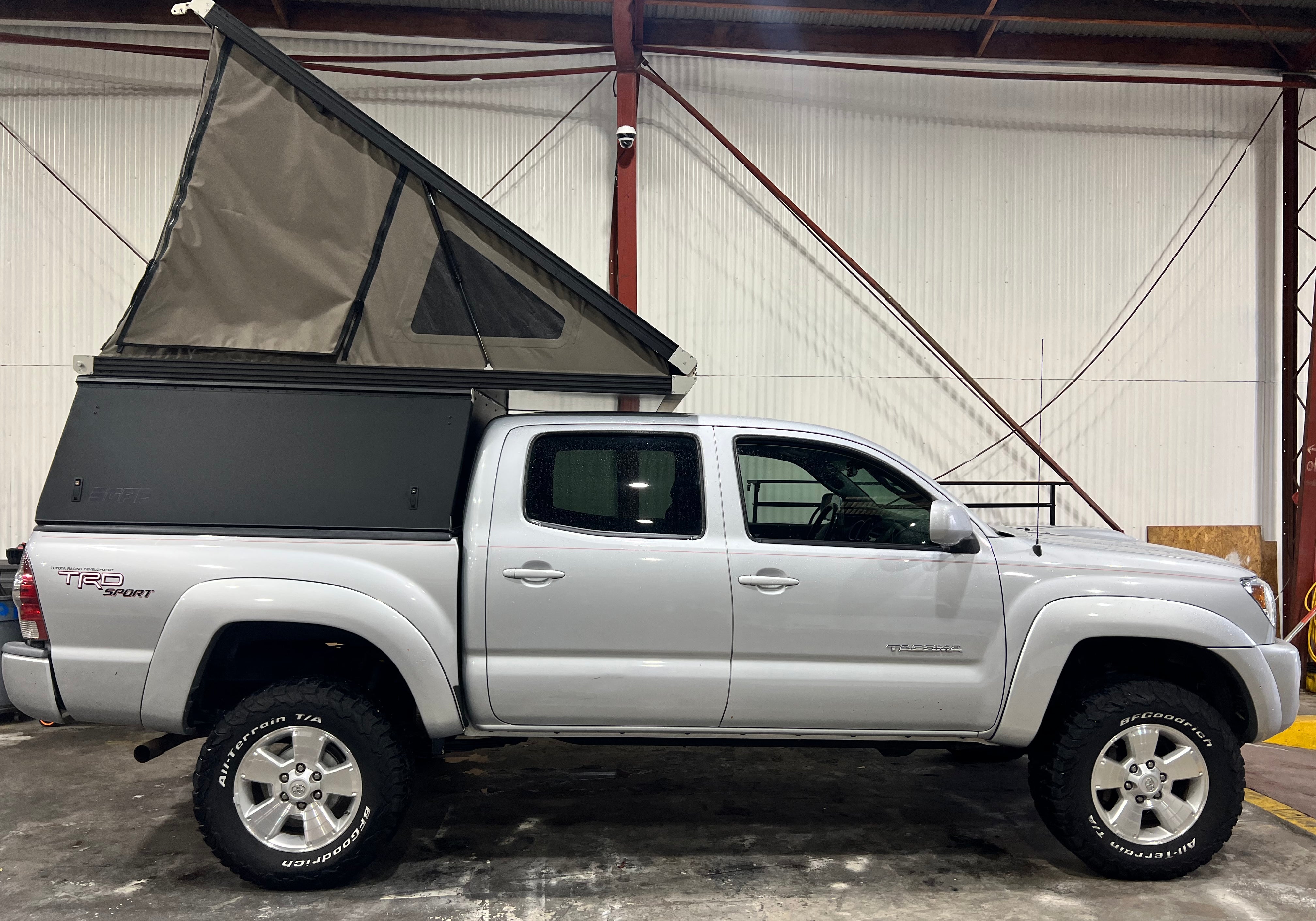 This 2010 Toyota Tacoma is outfitted with a GFC Platform Camper with Black panels. Check out more build specs below. Product: Platform Camper Panel Color: Black GFC Options: Windows, Side...
