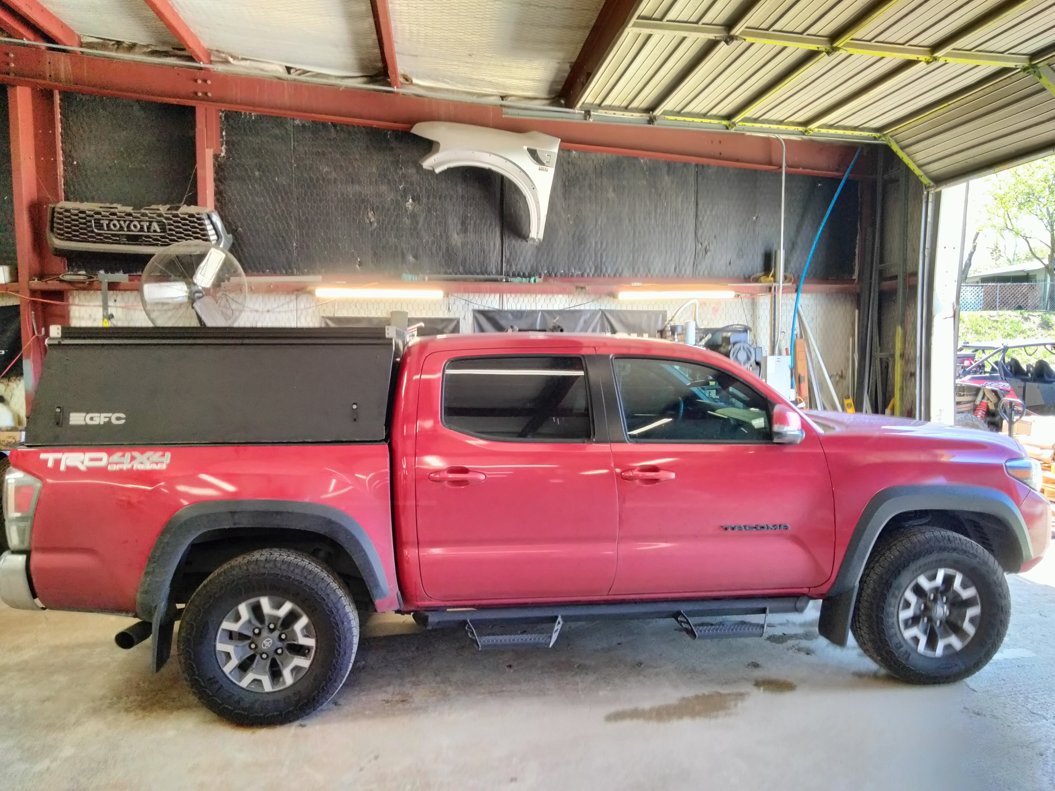 This 2022 Toyota Tacoma is outfitted with a GFC Platform Topper with Black panels. Check out more build specs below.