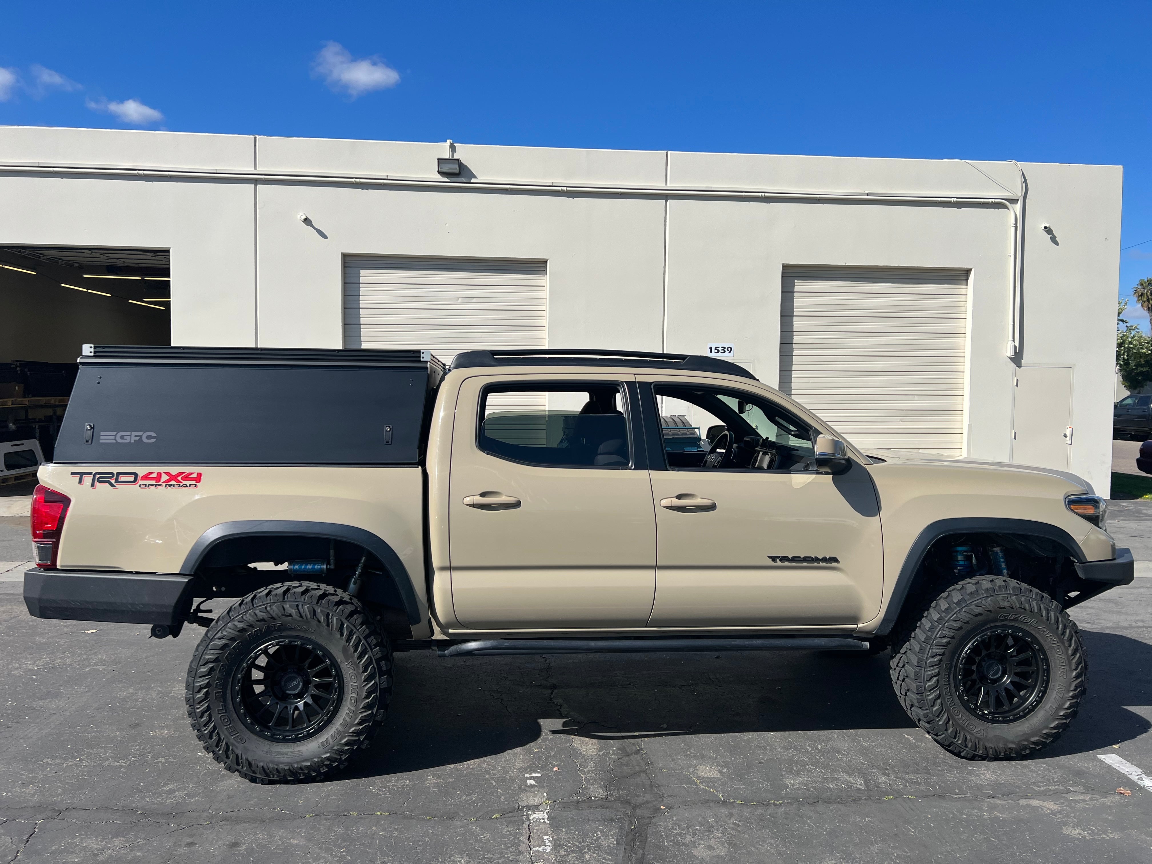 This 2019 Toyota Tacoma is outfitted with a GFC Platform Topper with Black panels. Check out more build specs below.