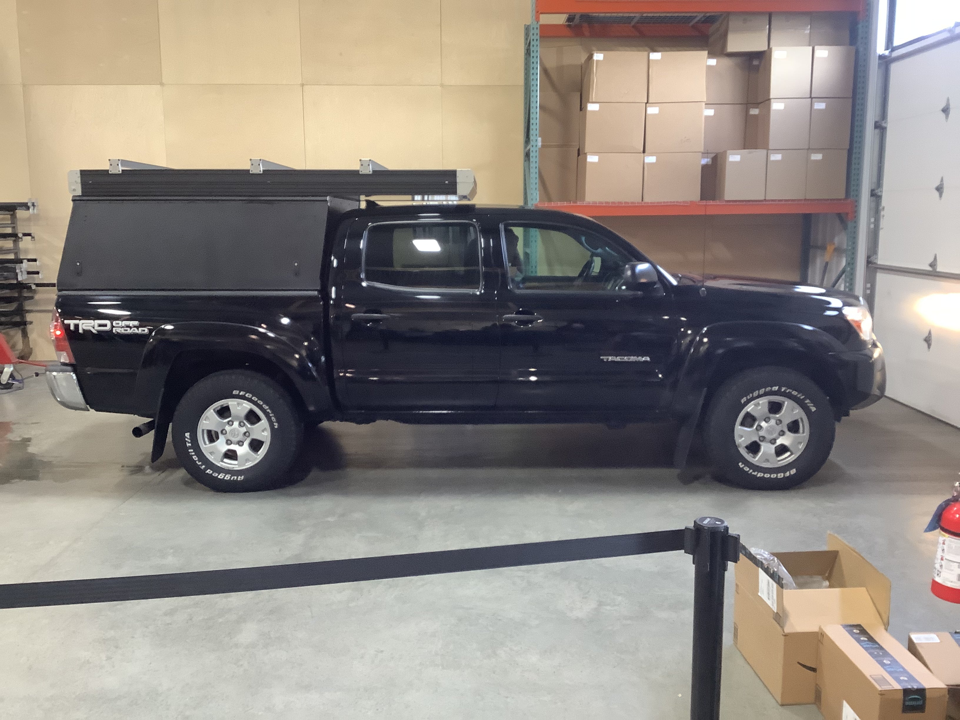 Product: Platform Camper Panel Color: Black GFC Options: Windows, Beef Rack Year: 2015 Make: Toyota Model: Tacoma Cab/Bed: Double Cab 5 foot Truck Color Black Wheels: Stock Suspension: Stock Tire: BFG Rugged Trail T/A 265/70/R16 Mods: All I need is a GFC Instagram Handle: Loriforty Install Date: 2022-05-26 Location: Virginia