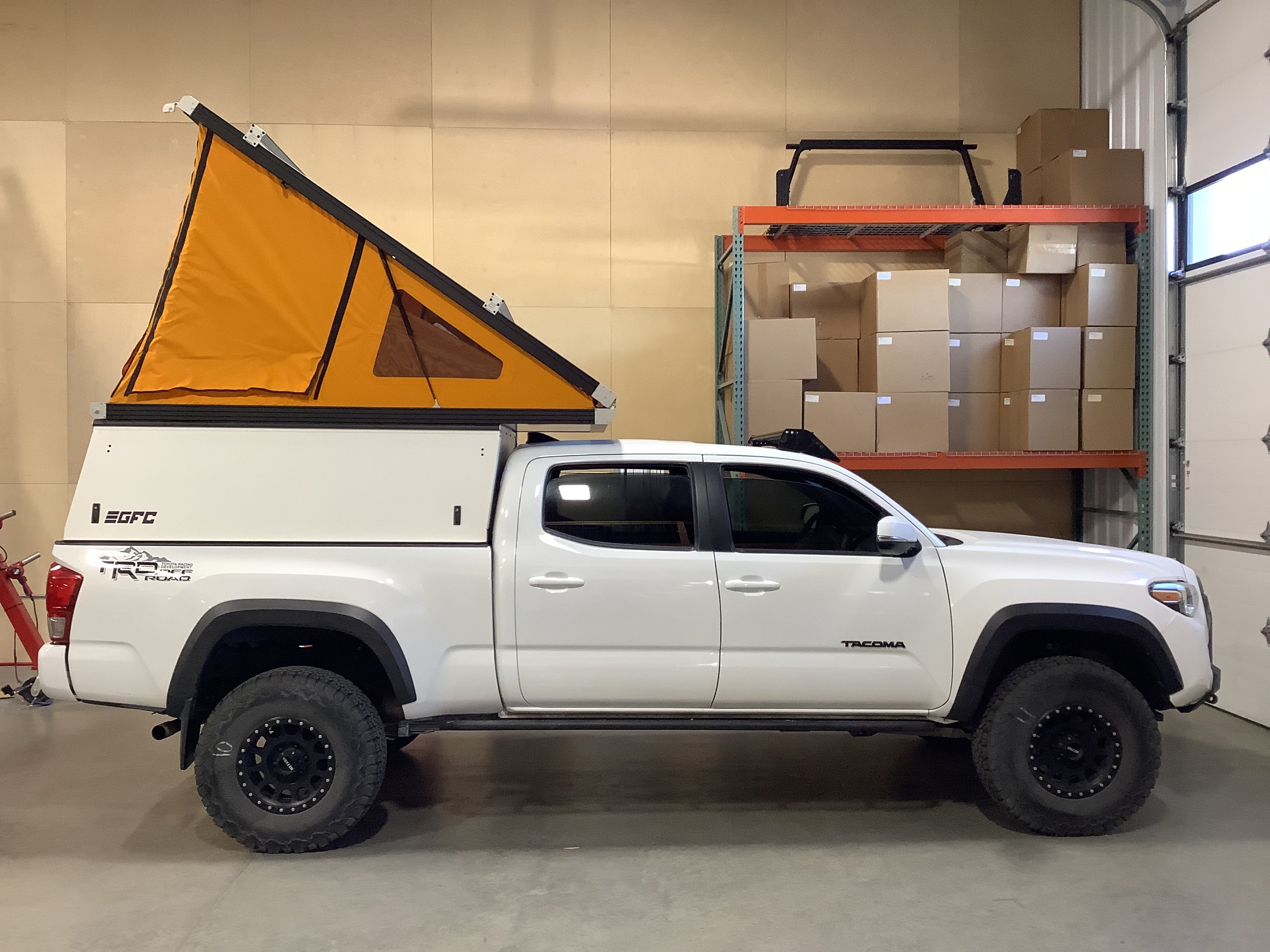 This 2016 Toyota Tacoma is outfitted with a GFC Platform Camper with White panels. Check out more build specs below.