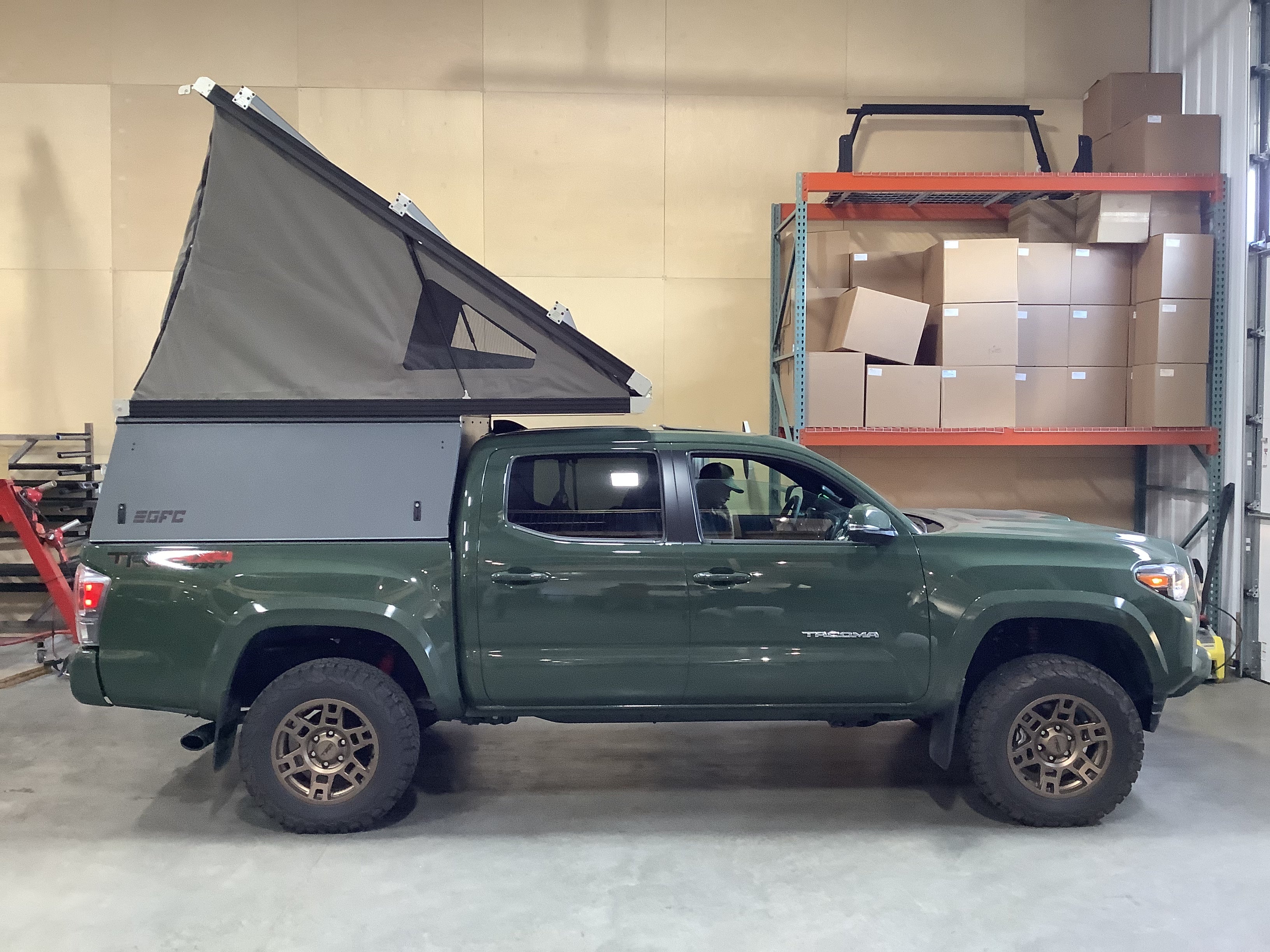 This 2022 Toyota Tacoma is outfitted with a GFC Platform Camper with Battleship Gray panels. Check out more build specs below.