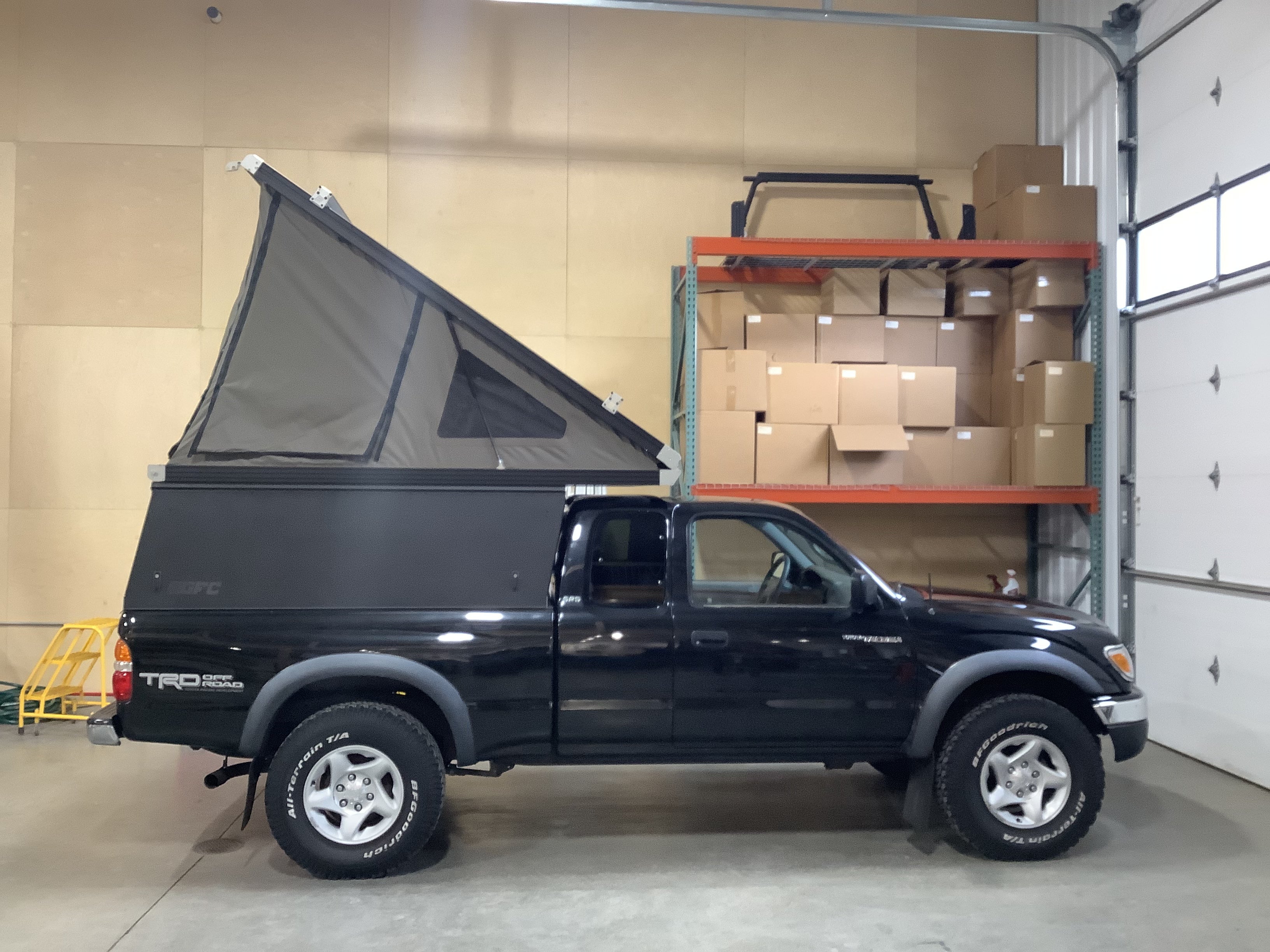 Product: Platform Camper Panel Color: Black GFC Options: Windows, Side Door Year: 2001 Make: Toyota Model: Tacoma Cab/Bed: Access Cab 6 Foot Truck Color Black Wheels: Stock Suspension: Stock Tire: BFG KO 265/75/R16 Mods: All I need is a GFC Instagram Handle: Install Date: 2022-09-18 Location: CA