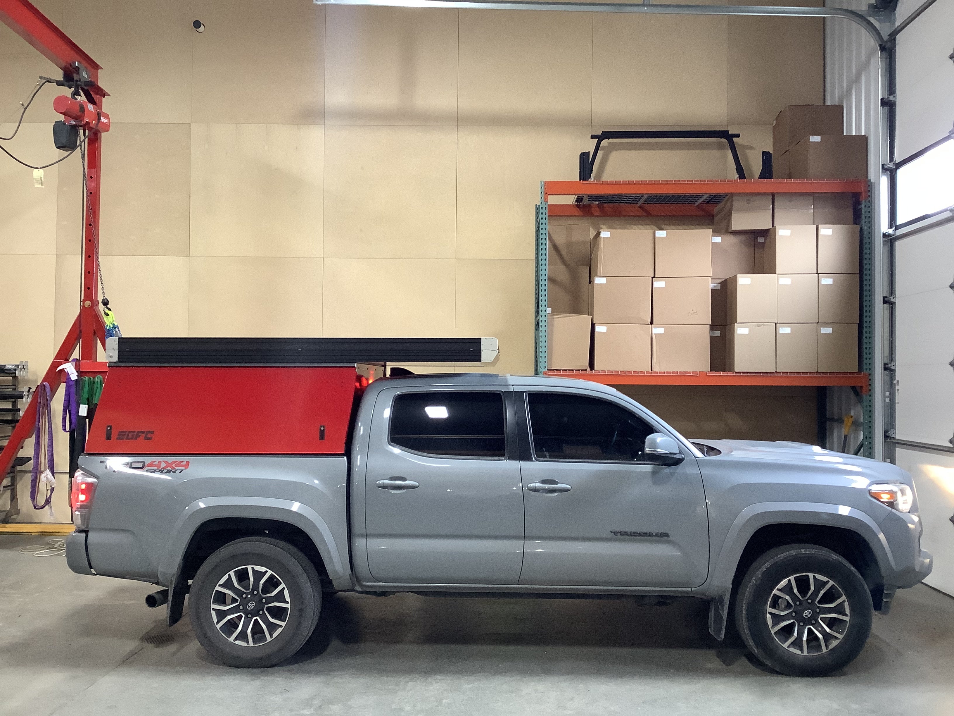 Product: Platform Camper Panel Color: Race Red GFC Options: Windows, Side Door Year: 2020 Make: Toyota Model: Tacoma Cab/Bed: Double Cab 5 foot Truck Color Gray Wheels: Stock Suspension: Stock Tire: Goodyear Wrangler 265/70/R16 Mods: All I need is a GFC Instagram Handle: None Install Date: 2022-04-21 Location: California