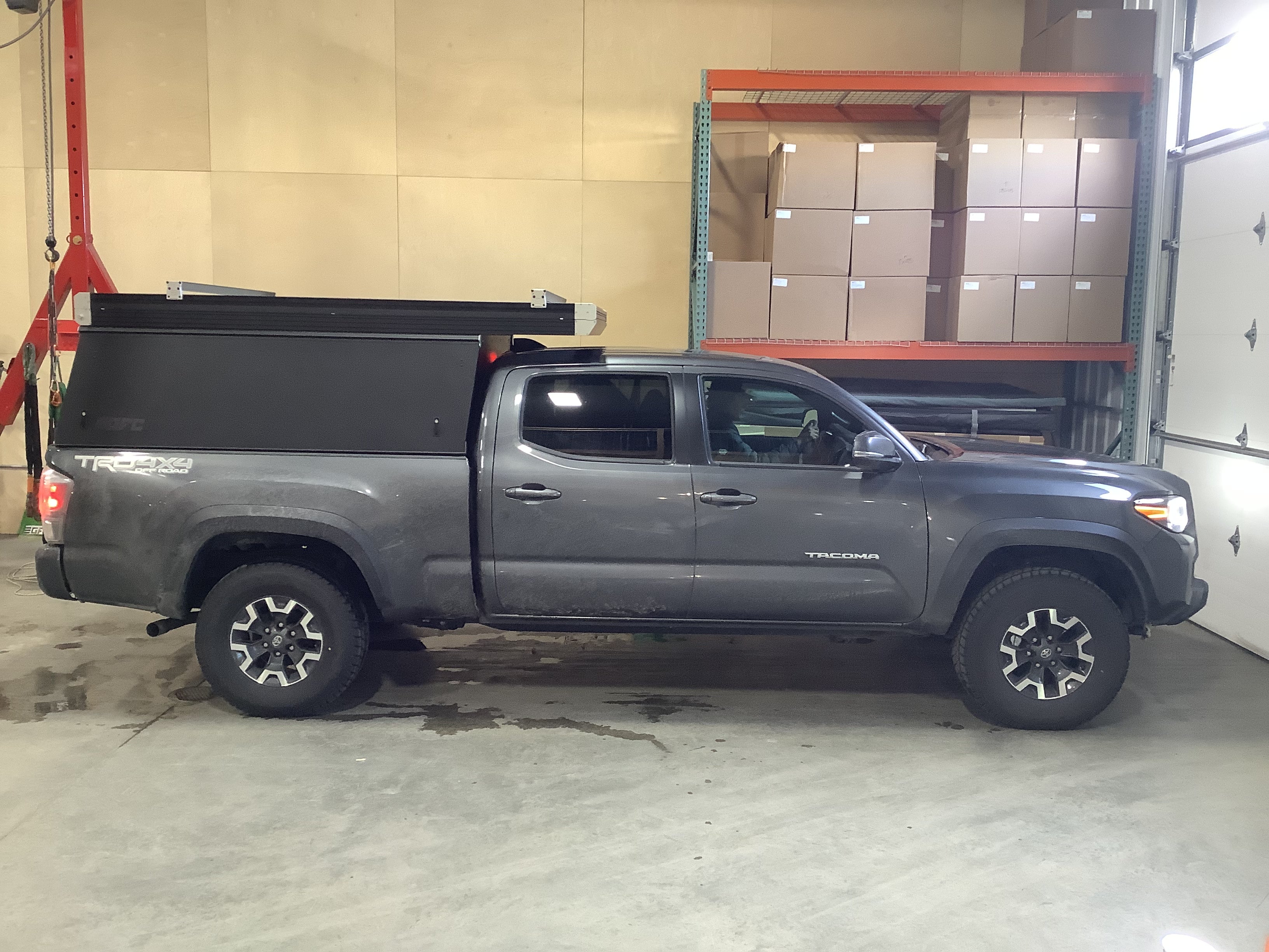 Product: Platform Camper Panel Color: Black GFC Options: Beef Rack, Windows, Side Door Year: 2022 Make: Toyota Model: Tacoma Cab/Bed: Double Cab 6 Foot Truck Color Gray Wheels: Stock Suspension: Stock Tire: Bridgestone Blizzak 265/70/R16 Mods: All I need is a GFC Instagram Handle:None Install Date: 2022-03-20 Location: Oregon