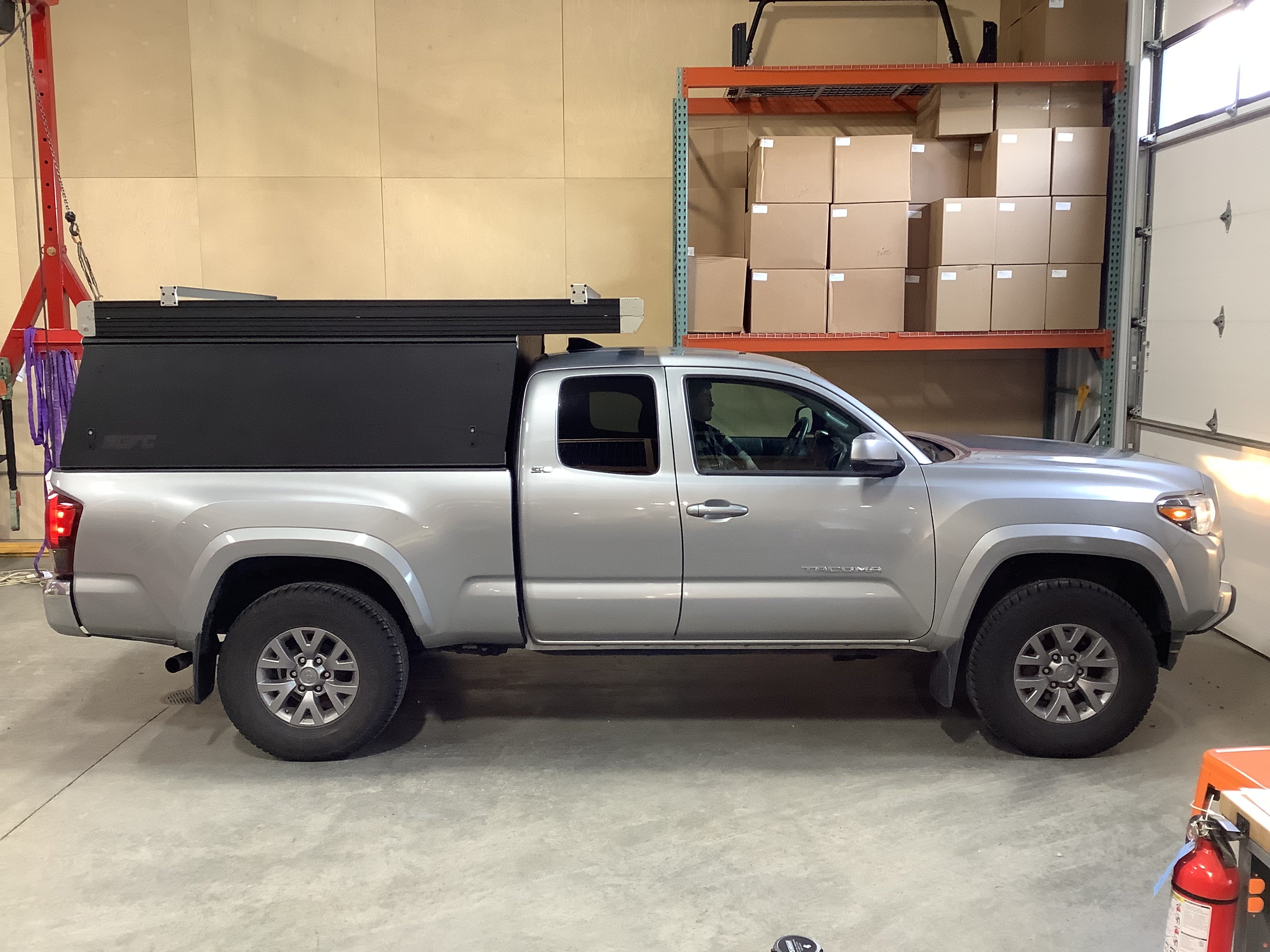 This 2019 Toyota Tacoma is outfitted with a GFC Platform Camper with Black panels. Check out more build specs below.