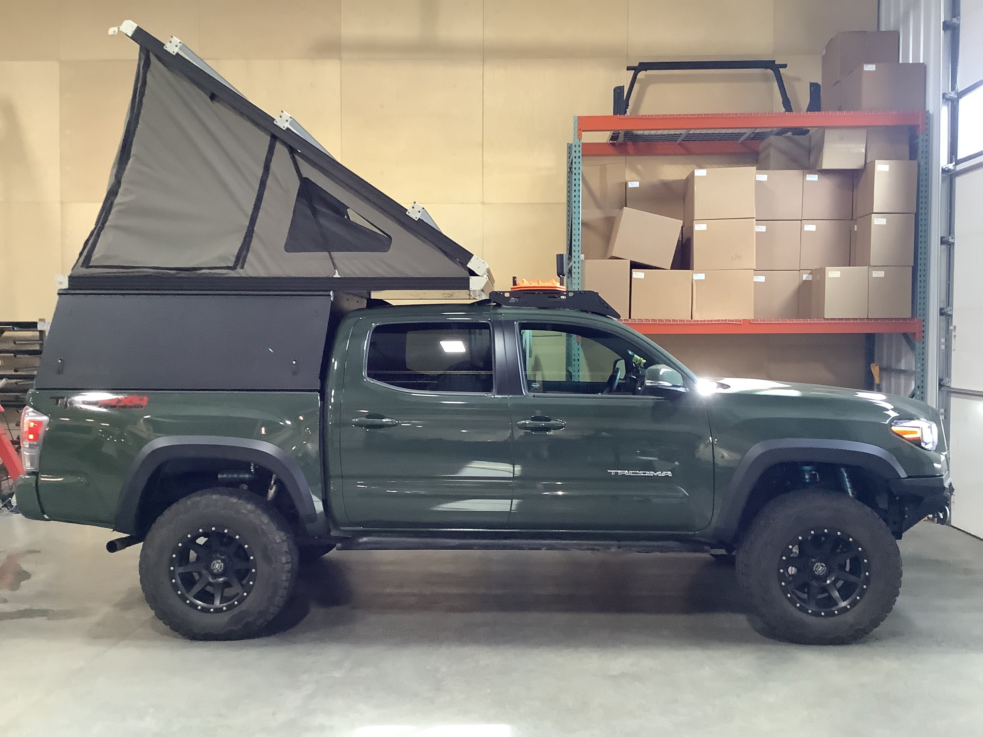 This 2022 Toyota Tacoma is outfitted with a GFC Platform Camper with Rifle Green panels. Check out more build specs below.