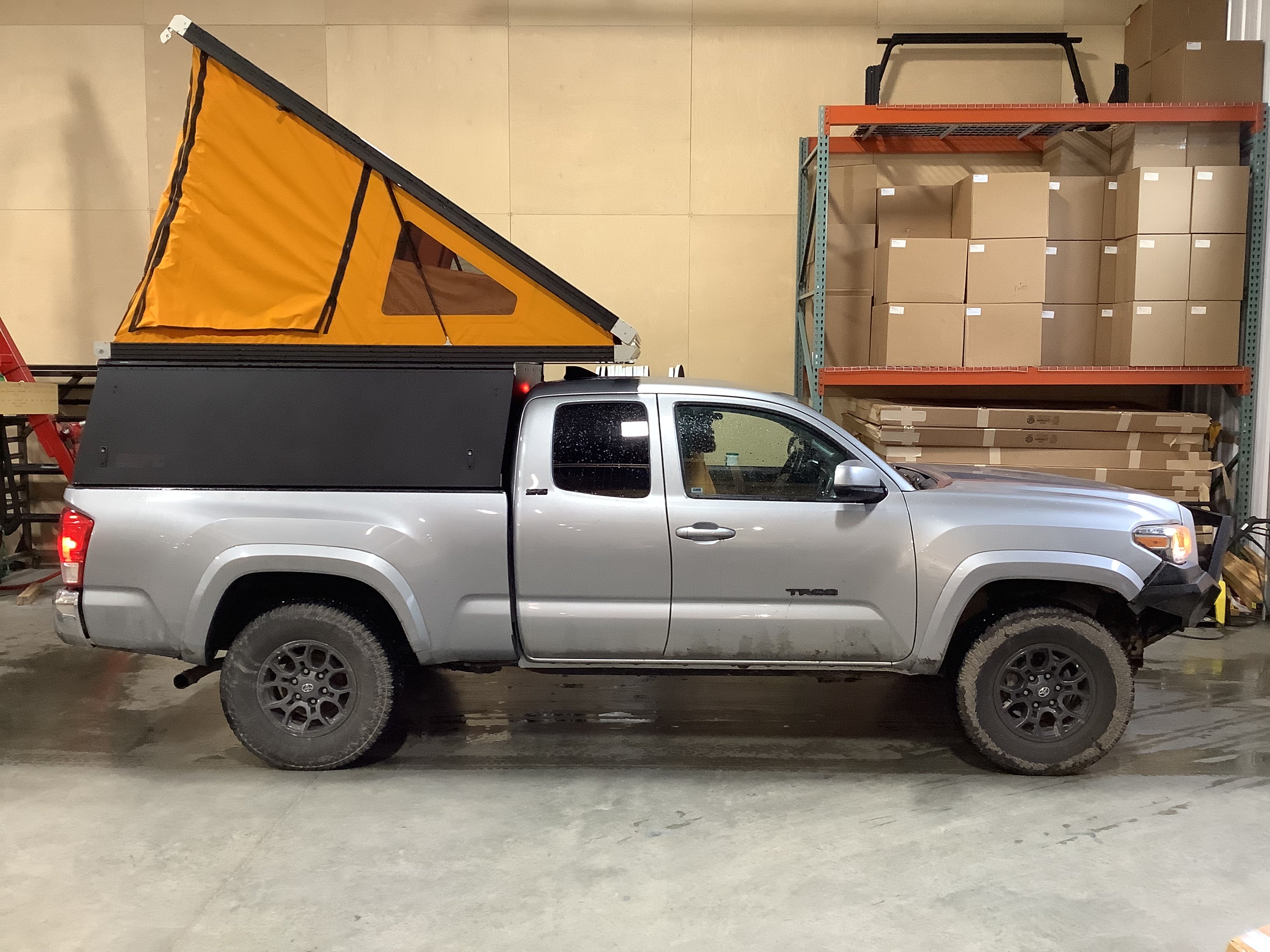 Product: Platform Camper Panel Color: Black GFC Options: Windows, Side Door Year: 2017 Make: Toyota Model: Tacoma Cab/Bed: Access Cab 6 Foot Truck Color Silver Wheels: Stock Suspension: Stock Tire: Goodyear Wrangler 265/75/R16 Mods: All I need is a GFC Instagram Handle:@km.forde Install Date: 2022-06-05 Location: California