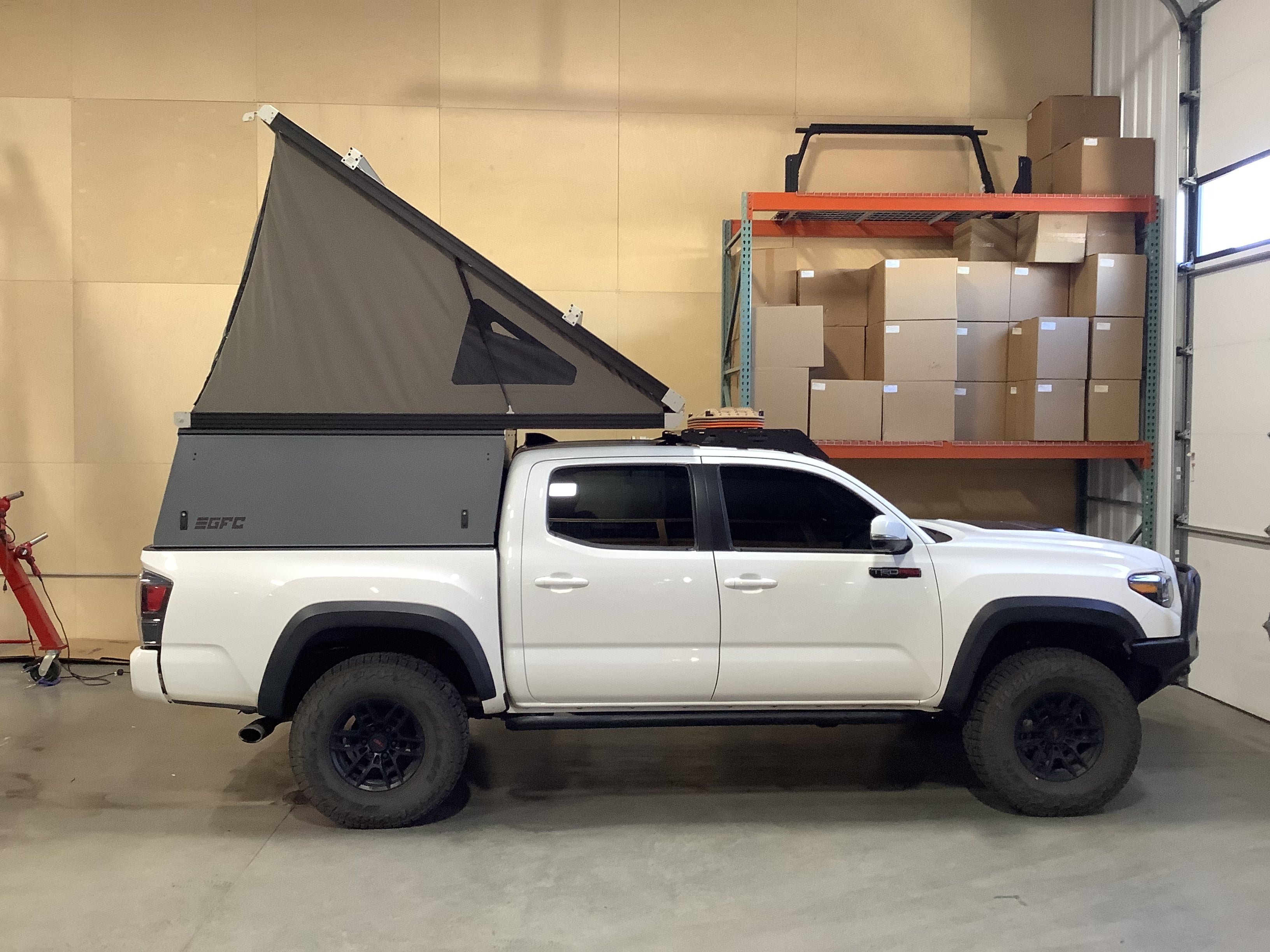 This 2021 Toyota Tacoma is outfitted with a GFC Platform Camper with Battleship Gray panels. Check out more build specs below.
