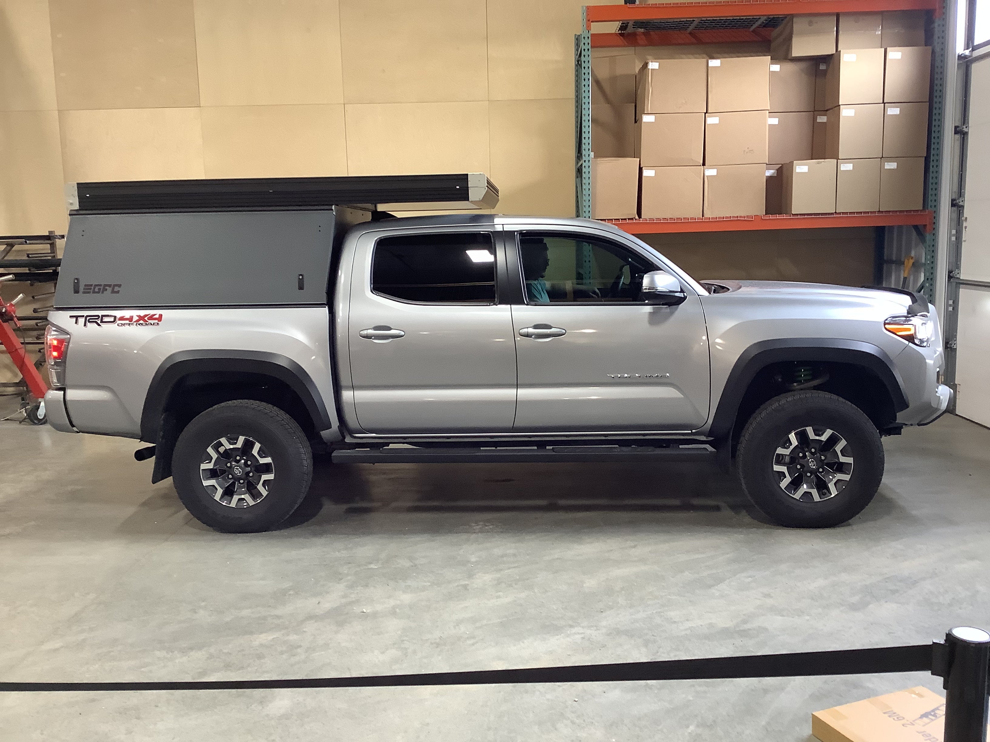 This 2021 Toyota Tacoma is outfitted with a GFC Platform Camper with Black panels. Check out more build specs below.
