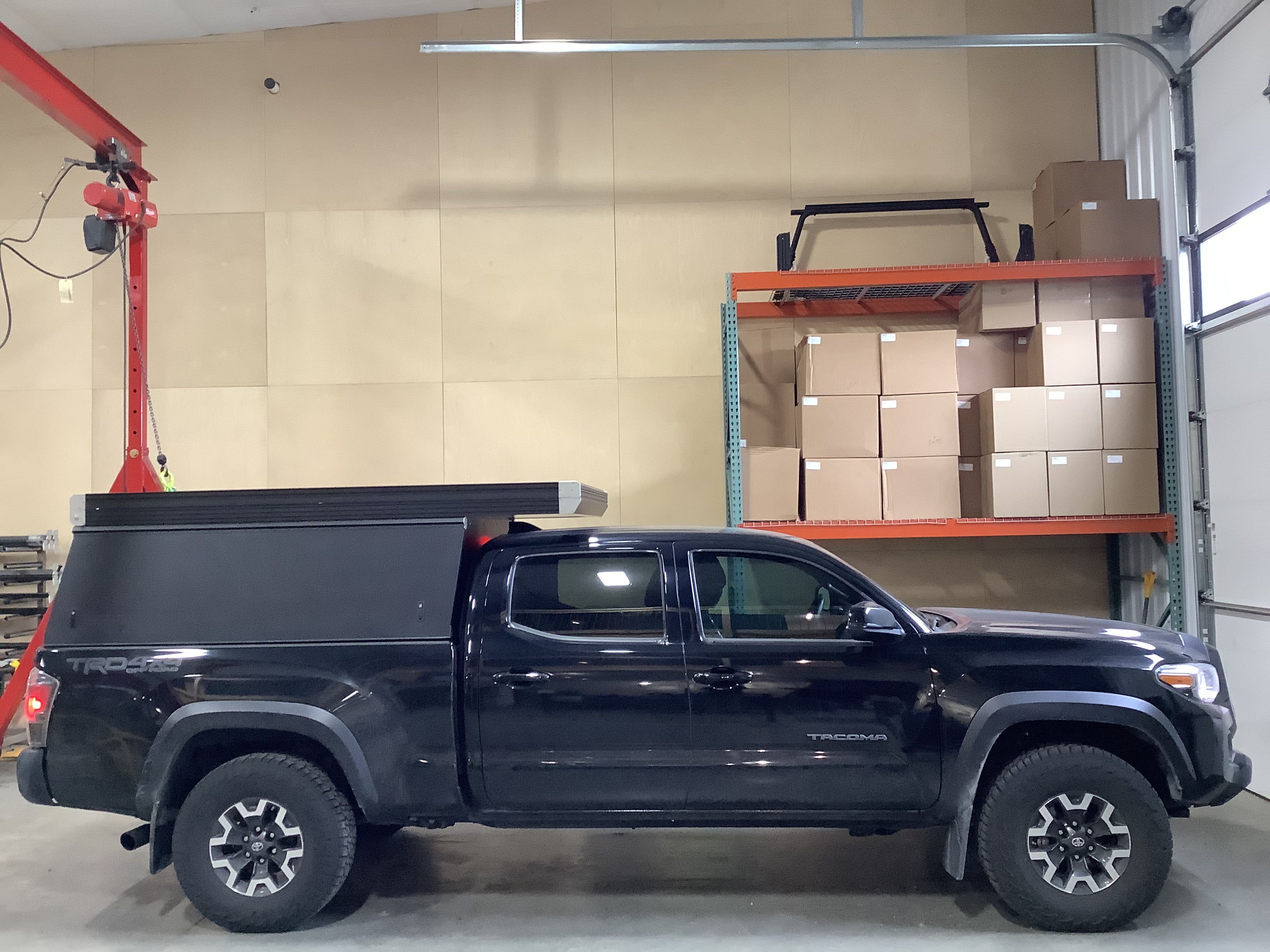 Product: Platform Camper Panel Color: Black GFC Options: Windows Year: 2020 Make: Toyota Model: Tacoma Cab/Bed: Double Cab 6 Foot Truck Color Black Wheels: Stock Suspension: Stock Tire: Goodyear Wrangler 265/70/R16 Mods: All I need is a GFC Instagram Handle:None Install Date: 2022-04-21 Location: Utah