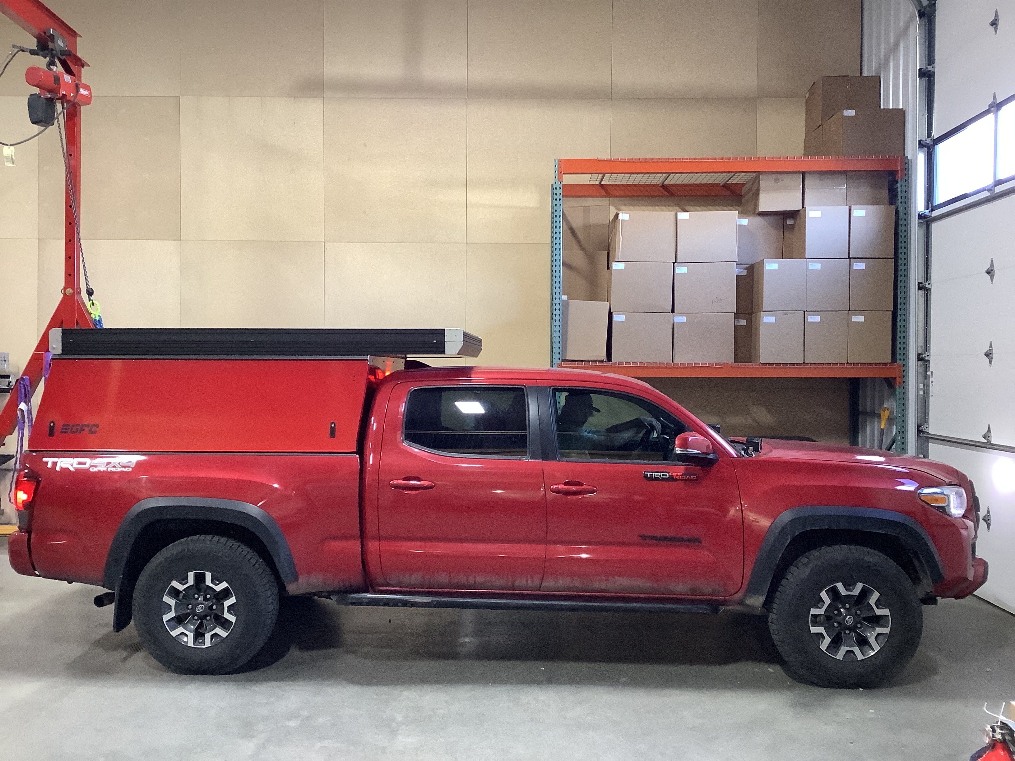Product: Platform Camper Panel Color: Race Red GFC Options: Windows, Side Door Year: 2018 Make: Toyota Model: Tacoma Cab/Bed: Double Cab 6 Foot Truck Color Red Wheels: Stock Suspension: Stock Tire: Goodyear Wrangler 265/60/R16 Mods: All I need is a GFC Instagram Handle: @themightygriffn Install Date: 2022-04-10 Location: Colorado