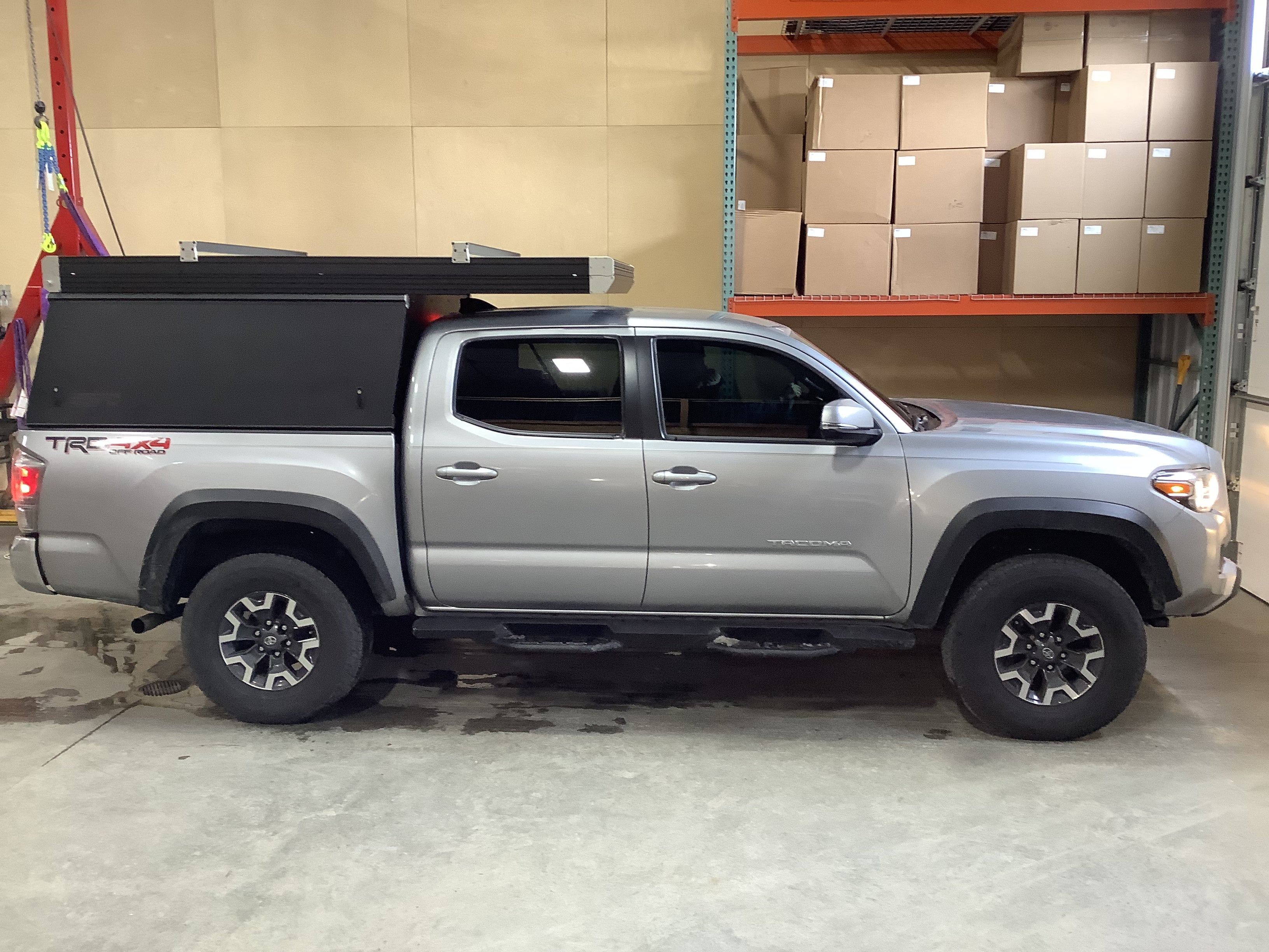 Product: Platform Camper Panel Color: Black GFC Options: Beef Rack, Windows, Side Door Year: 2021 Make: Toyota Model: Tacoma Cab/Bed: Double Cab 5 foot Truck Color Silver Wheels: Stock Suspension: Stock Tire: Goodyear Wrangler 265/60/R16 Mods: All I need is a GFC Instagram Handle:@scottfeastman Install Date: 2022-04-17 Location: Florida