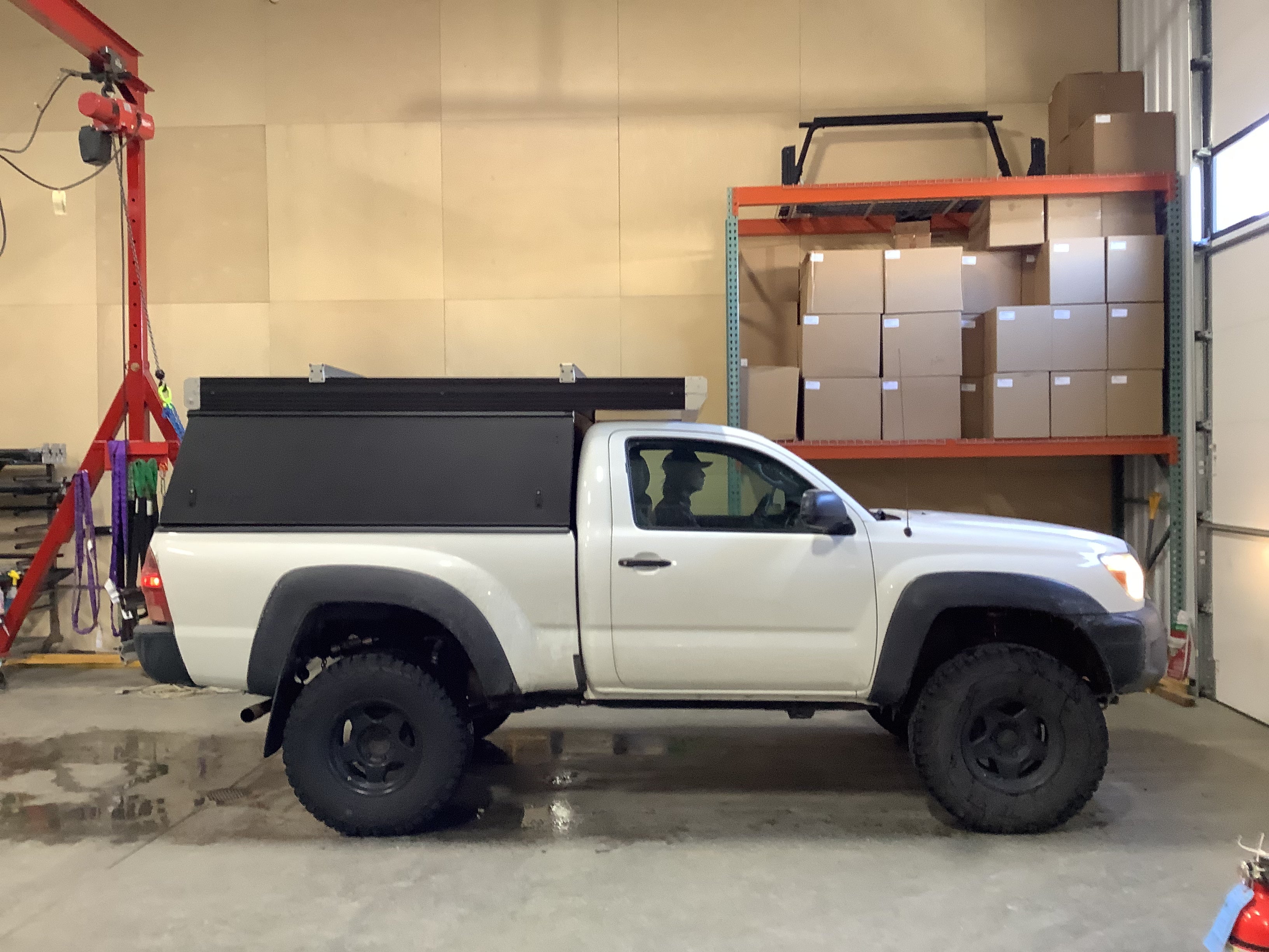 Product: Platform Camper Panel Color: Black GFC Options: Windows, Beef Rack, Side Door Year: 2012 Make: Toyota Model: Tacoma Cab/Bed: Regular/Single Cab 6 Foot Truck Color White Wheels: SCS Suspension: Icon Tire: BFG KO2 285/75/R16 Mods: All I need is a GFC Instagram Handle:@ron.wolfe Install Date: 2022-04-15 Location: California