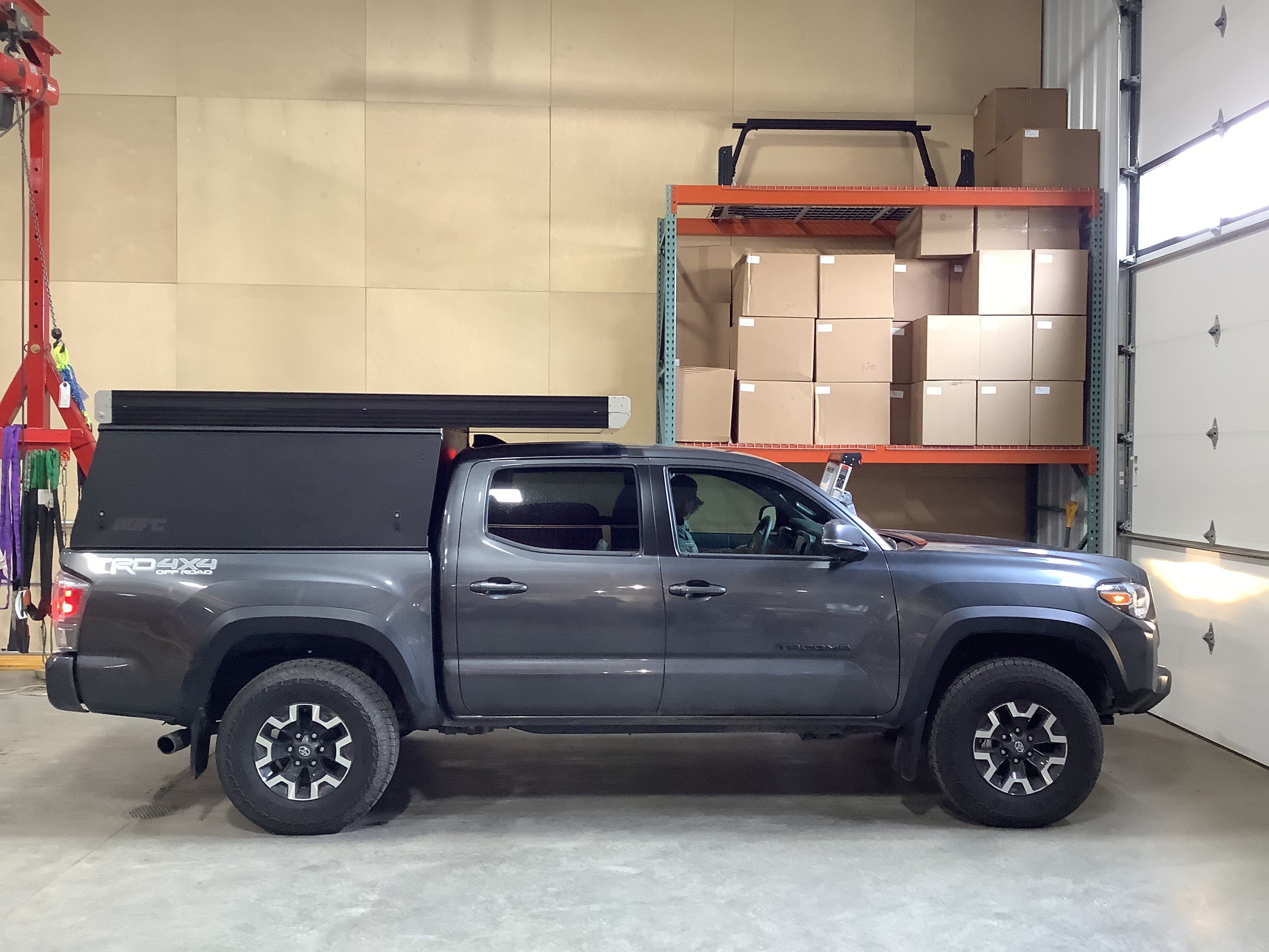 This 2022 Toyota Tacoma is outfitted with a GFC Platform Camper with Black panels. Check out more build specs below.