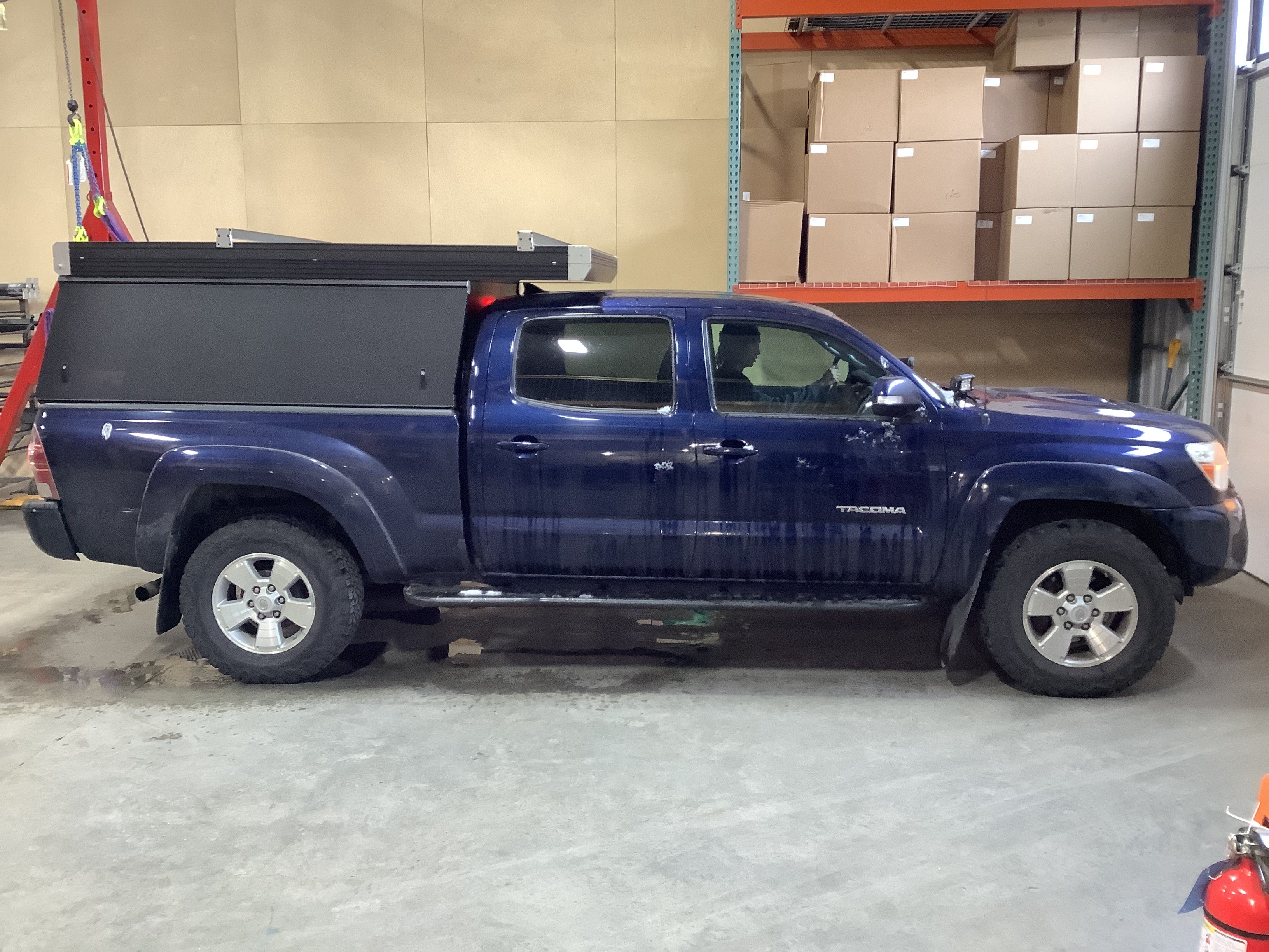 Product: Platform Camper Panel Color: Black GFC Options: Windows, Side Door, Beef Rack Year: 2012 Make: Toyota Model: Tacoma Cab/Bed: Double Cab 6 Foot Truck Color Blue Wheels: Stock Suspension: Stock Tire: BFG KO2 265/70/R16 Mods: All I need is a GFC Instagram Handle: @bcman5 Install Date: 2022-04-17 Location: Colorado
