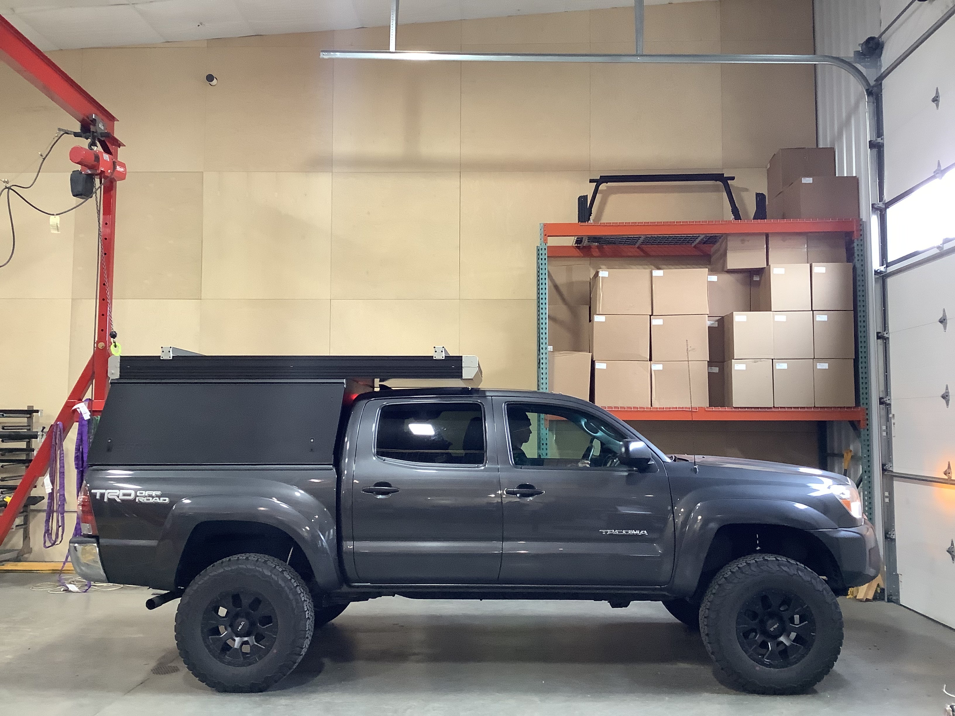 Product: Platform Camper Panel Color: Black GFC Options: Windows, Side Door, Beef Rack Year: 2015 Make: Toyota Model: Tacoma Cab/Bed: Double Cab 5 foot Truck Color Gray Wheels: HELO Suspension: Rough Country, Old Man Emu/ARB Tire: BFG KO2 285/75/R16 Mods: All I need is a GFC Instagram Handle:None Install Date: 2022-04-21 Location: North Carolina