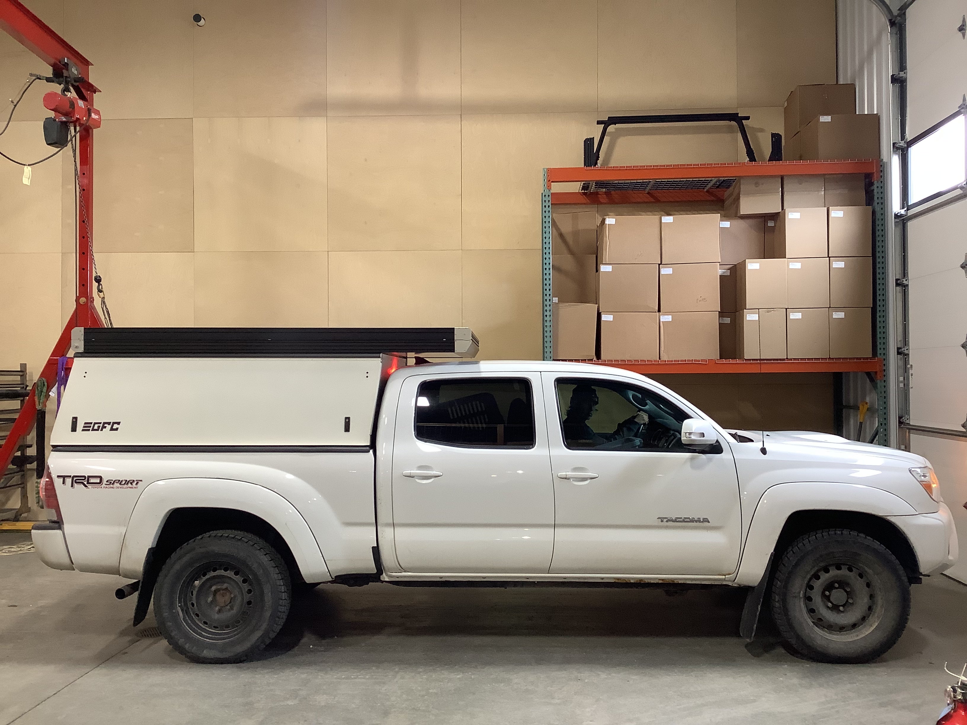 Product: Platform Camper Panel Color: White GFC Options: Windows Year: 2015 Make: Toyota Model: Tacoma Cab/Bed: Double Cab 6 Foot Truck Color White Wheels: Stock Suspension: Stock Tire: Goodyear Wrangler 265/70/R16 Mods: All I need is a GFC Instagram Handle:Noen Install Date: 2022-04-23 Location: Canada