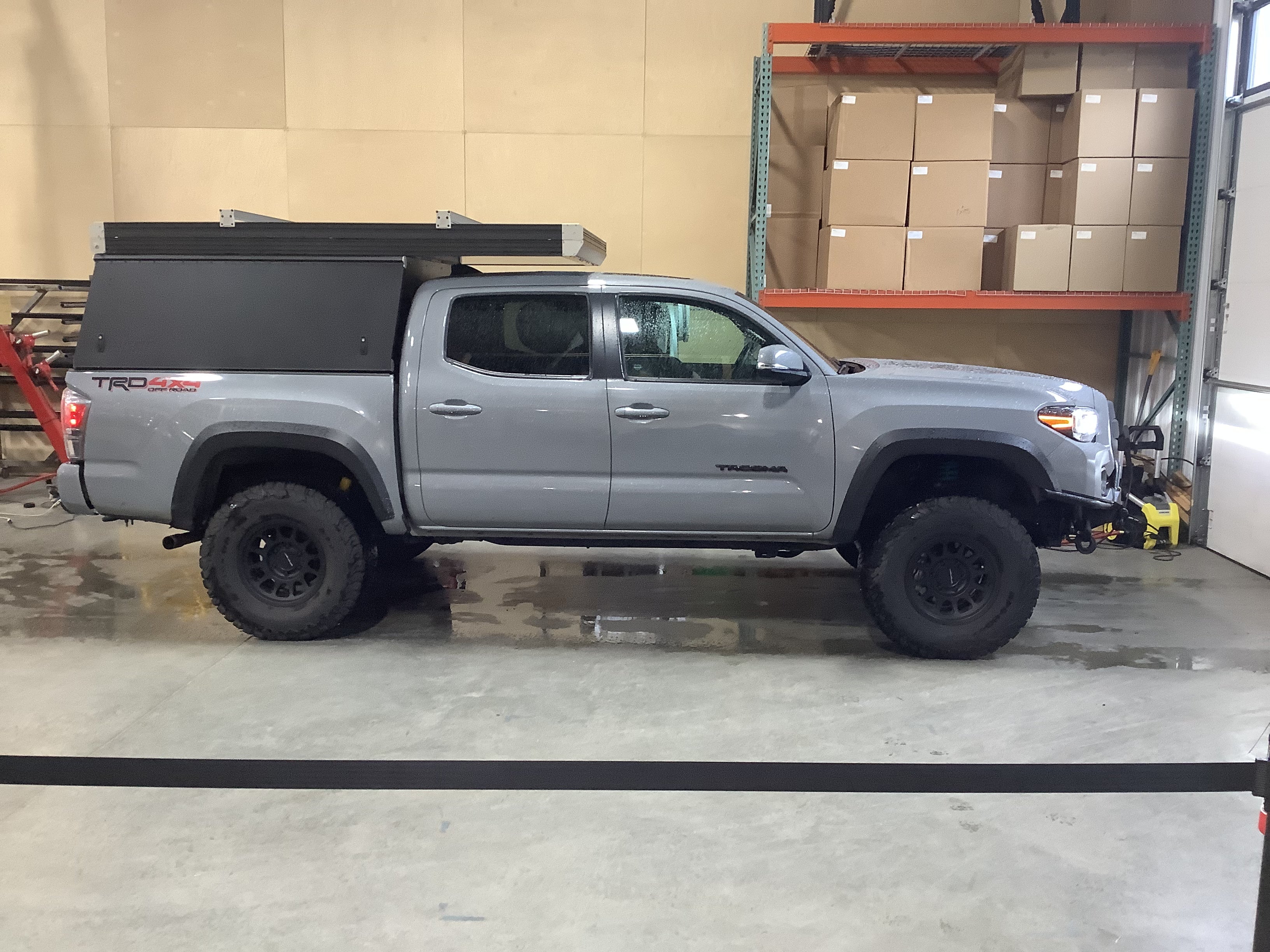 This 2020 Toyota Tacoma is outfitted with a GFC Platform Camper with Black panels. Check out more build specs below.