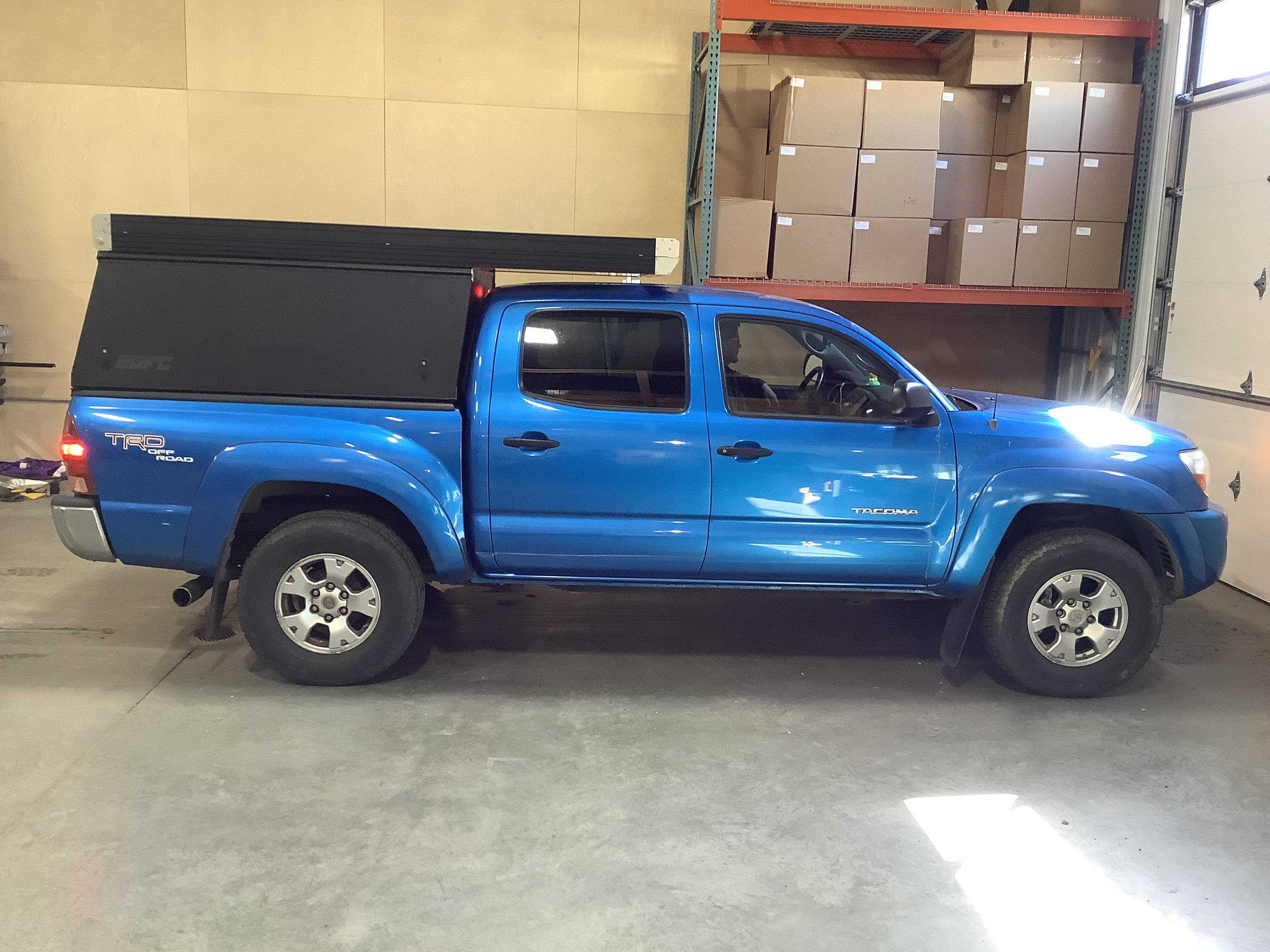 Product: Platform Camper Panel Color: Black GFC Options: Windows Year: 2007 Make: Toyota Model: Tacoma Cab/Bed: Double Cab 5 foot Truck Color Blue Wheels: Stock Suspension: Stock Tire: Michelin Defender 265/70/R16 Mods: All I need is a GFC Instagram Handle: None Install Date: 2022-05-13 Location: Nevada