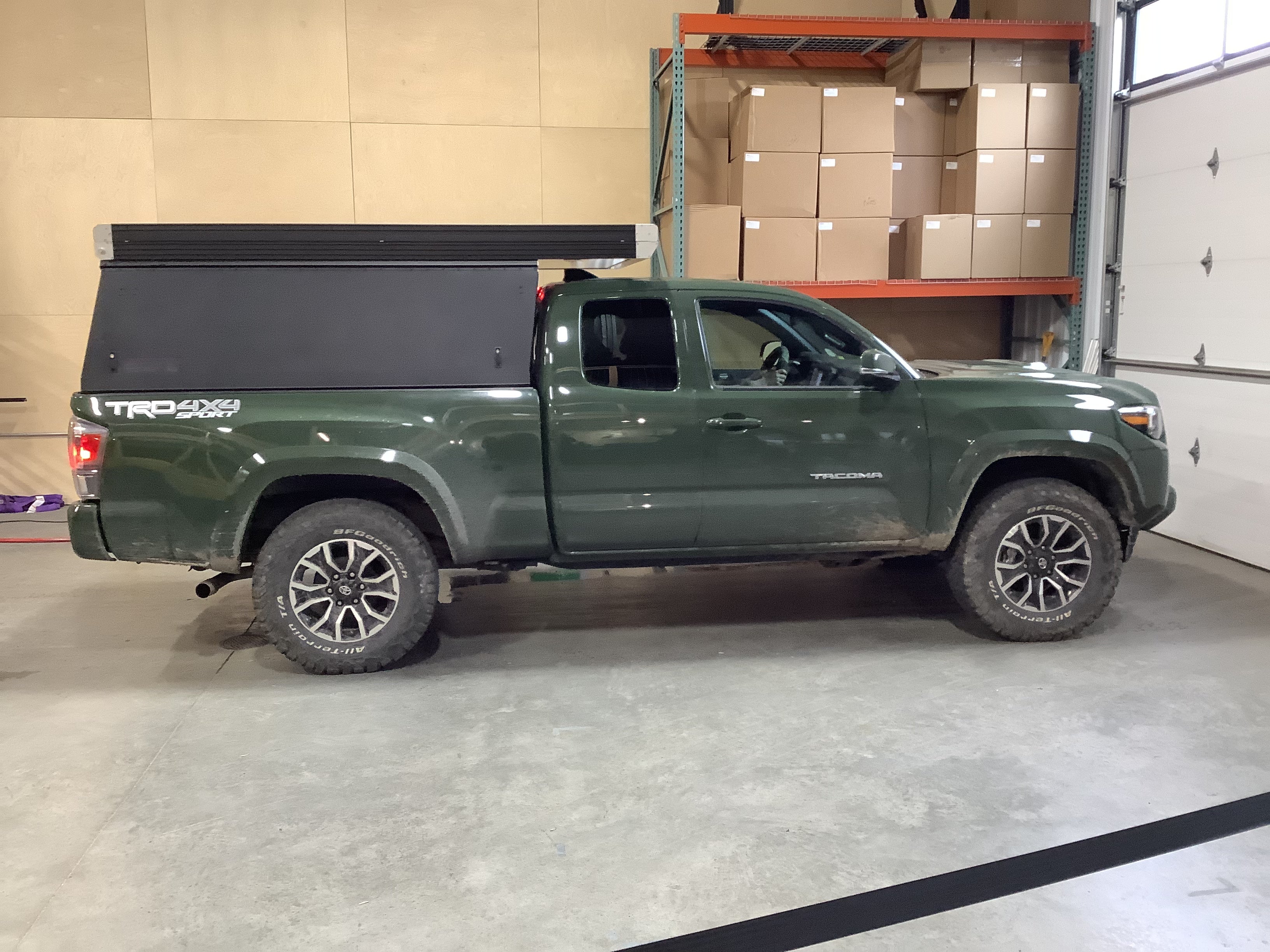 This 2021 Toyota Tacoma is outfitted with a GFC Platform Camper with Black panels. Check out more build specs below.