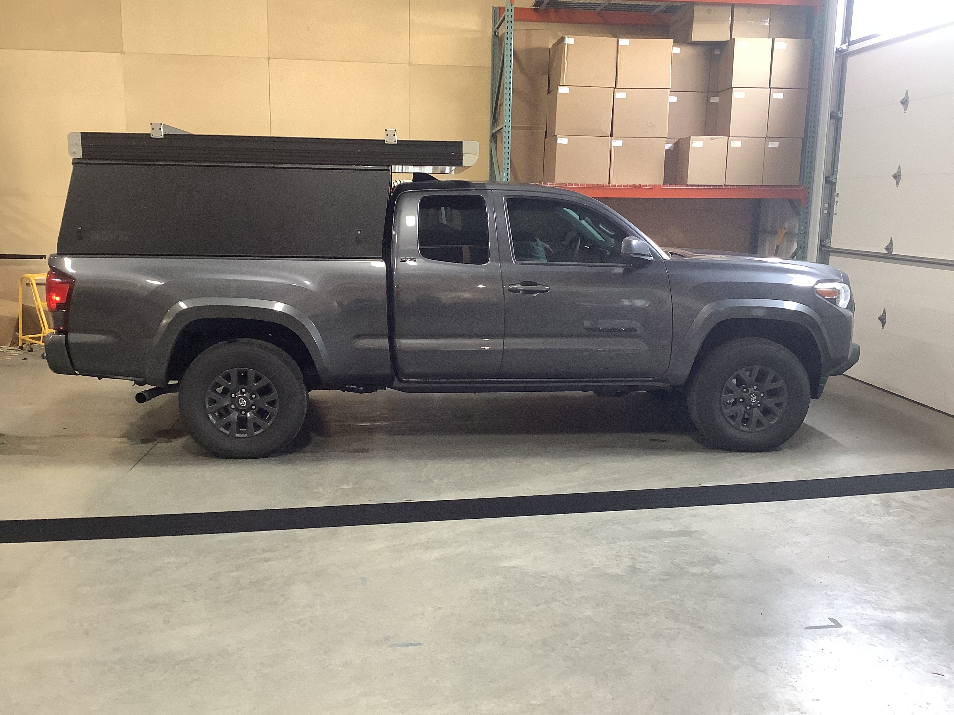 This 2022 Toyota Tacoma is outfitted with a GFC Platform Camper with Black panels. Check out more build specs below.