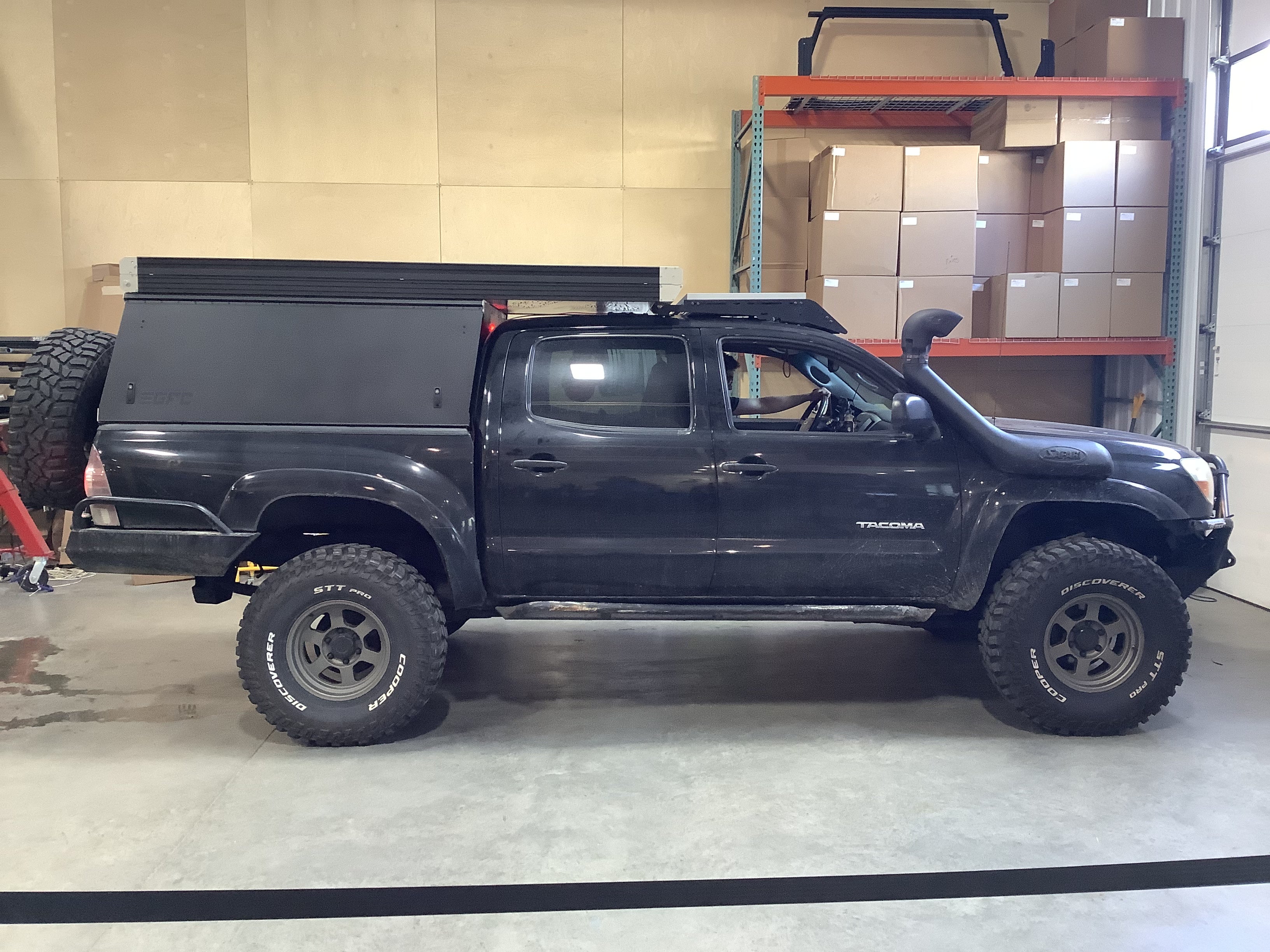 This 2011 Toyota Tacoma is outfitted with a GFC Platform Camper with Black panels. Check out more build specs below.