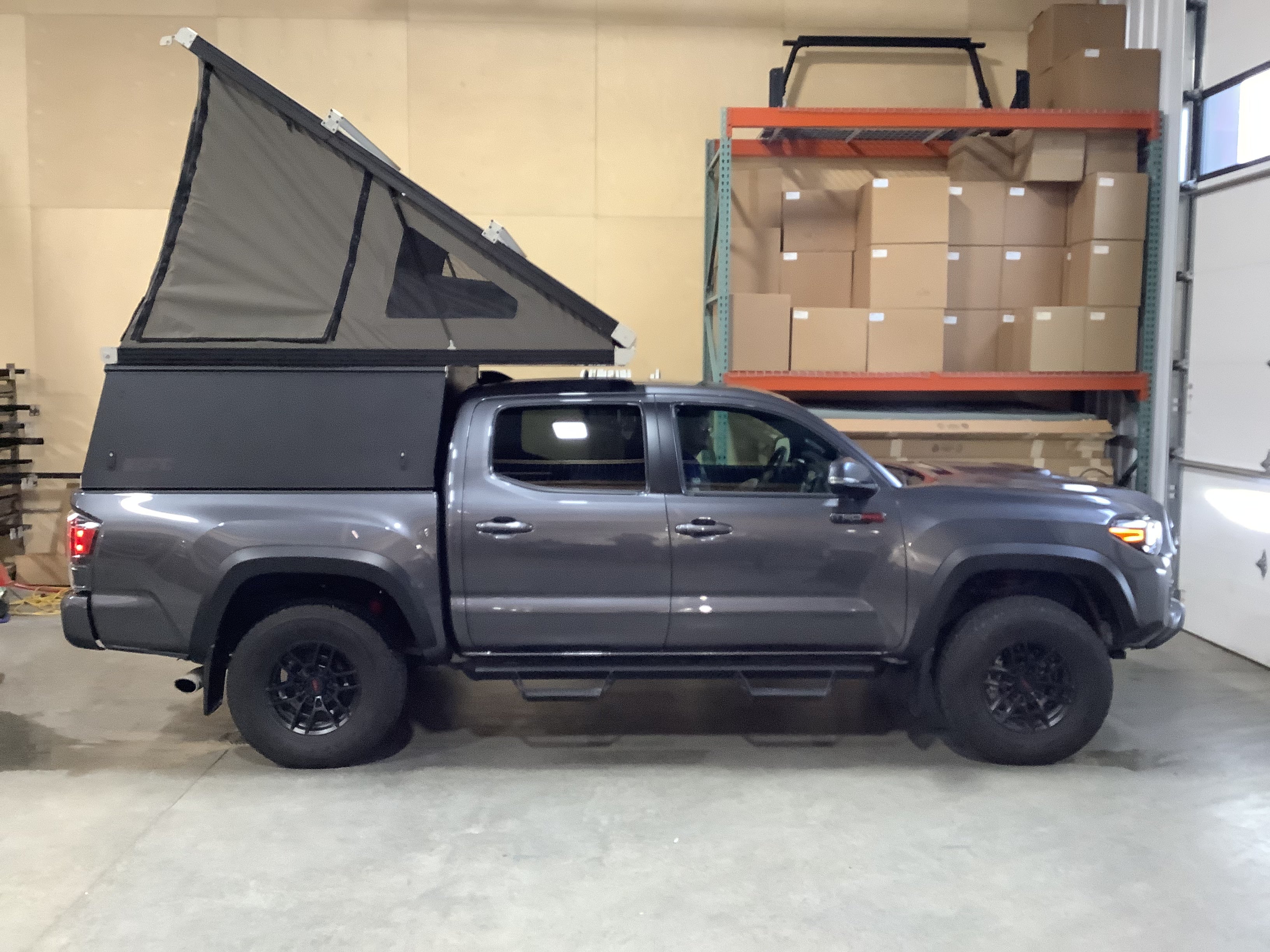 This 2021 Toyota Tacoma is outfitted with a GFC Platform Camper with Black panels. Check out more build specs below.
