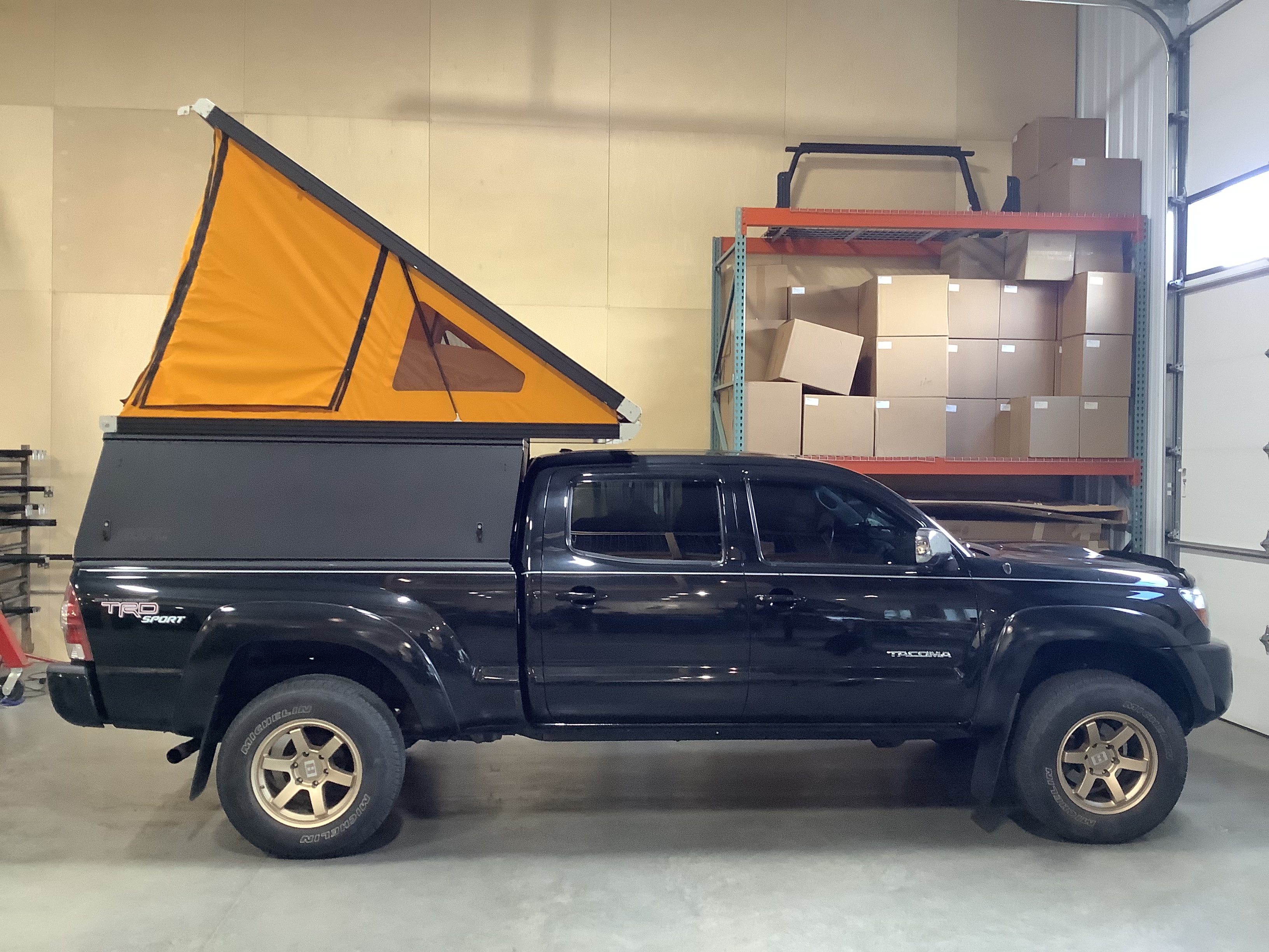 Product: Platform Camper Panel Color: Black GFC Options: Windows, Side Door Year: 2009 Make: Toyota Model: Tacoma Cab/Bed: Double Cab 6 Foot Truck Color Black Wheels: Level 8 Suspension: Stock Tire: Michelin Defender 265/70/R17 Mods: All I need is a GFC Instagram Handle: Install Date: 2022-06-23 Location: KY